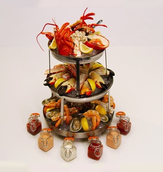 Using both raw and refined elements with earth tones, pearlescent accents, and natural textures, we’ve created a sophisticated yet approachable restaurant. The dramatic raw bar display at the entrance showcases an abundance of oysters, crab, and lobsters to choose from. The menu, also available at the Magic Carpet® when positioned on deck 5, will feature more casual offerings like Shrimp Salad, our signature Lobster Roll and sushi and sashimi prepared by our expert sushi chefs.
