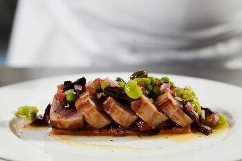 If ever there were a singular dish to represent the importance provenance plays in the ingredients used onboard Explora Journeys, then this is surely it. Sharp sundried Taggiasca olives compliment the sweet San Marzano tomatoes, creating a perfectly balanced bed for the expertly grilled, sustainably sourced octopus.