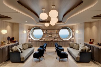 Effortlessly refined in its design, space creates a relaxed, convivial atmosphere, where bright sunshine streams through large portholes and Med-influenced music transports guests on a culinary journey inspired by the sea.
