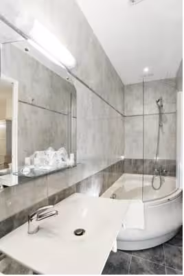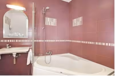 Rooms are equipped with air conditioning, central heating and a fan. The rooms have a queen-size bed and a sofa bed. Extra beds can be requested. A safe and a desk are also available. Guests will also find a tea/coffee station included among the standard features. An ironing set is provided for guests' convenience. A telephone, a television with satellite/cable channels and WiFi (no extra charge) are provided as well. Bathrooms are equipped with a shower and a bathtub, as well as a hairdryer. For extra comfort in the bathrooms, guests are offered cosmetic products. The hotel has family rooms and non-smoking rooms.
