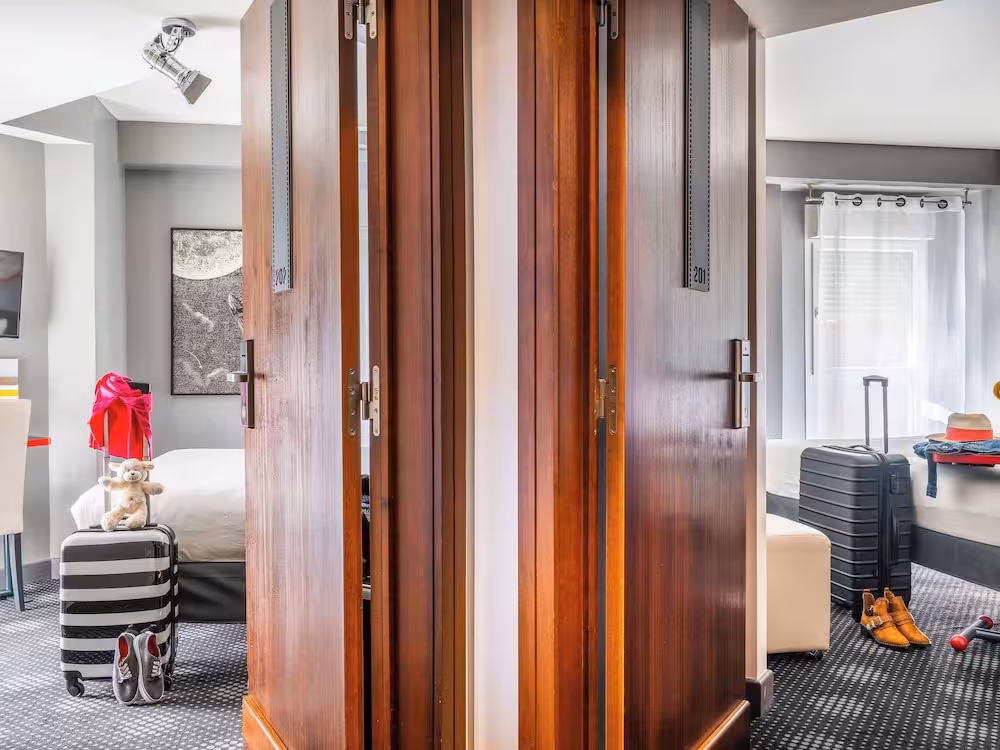 Air conditioning and central heating ensure that rooms maintain comfortable temperatures. Rooms include a double bed. A safe, a minibar and a desk are also available. Additional features include a refrigerator and a tea/coffee station. An ironing set is provided for guests' convenience. A direct dial telephone, a TV, a radio and WiFi (no extra charge) are provided as well. Bathrooms are equipped with a shower and a bidet, as well as a hairdryer. Guests can also book wheelchair-friendly rooms with wheelchair-accessible bathrooms. The hotel has family rooms and non-smoking rooms.