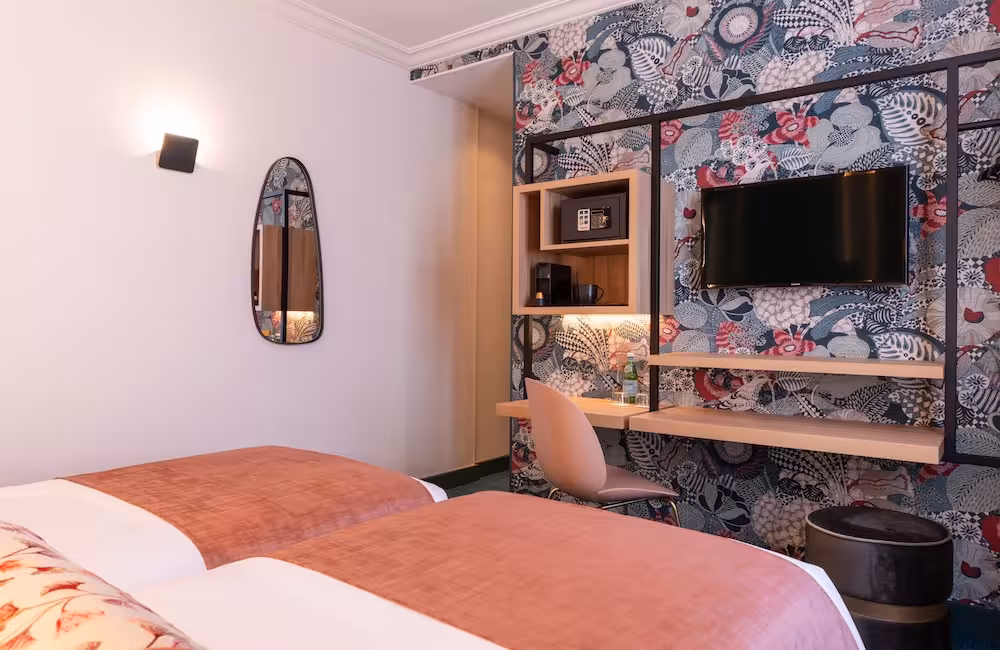 This attractive hotel is located in a quiet side street, around 100 m from the metro station Grands Boulevards. A wide range of shops, restaurants, cafés and bars are to be found in the immediate vicinity. The Opéra Garnier, Galeries Lafayette, the Louvre, the Sacré Coeur and Notre Dame are around 10 minutes from the hotel by public transport. Paris/Orly airport is around 20 km away and Roissy/Charles de Gaulle airport is roughly 25 km from the hotel.