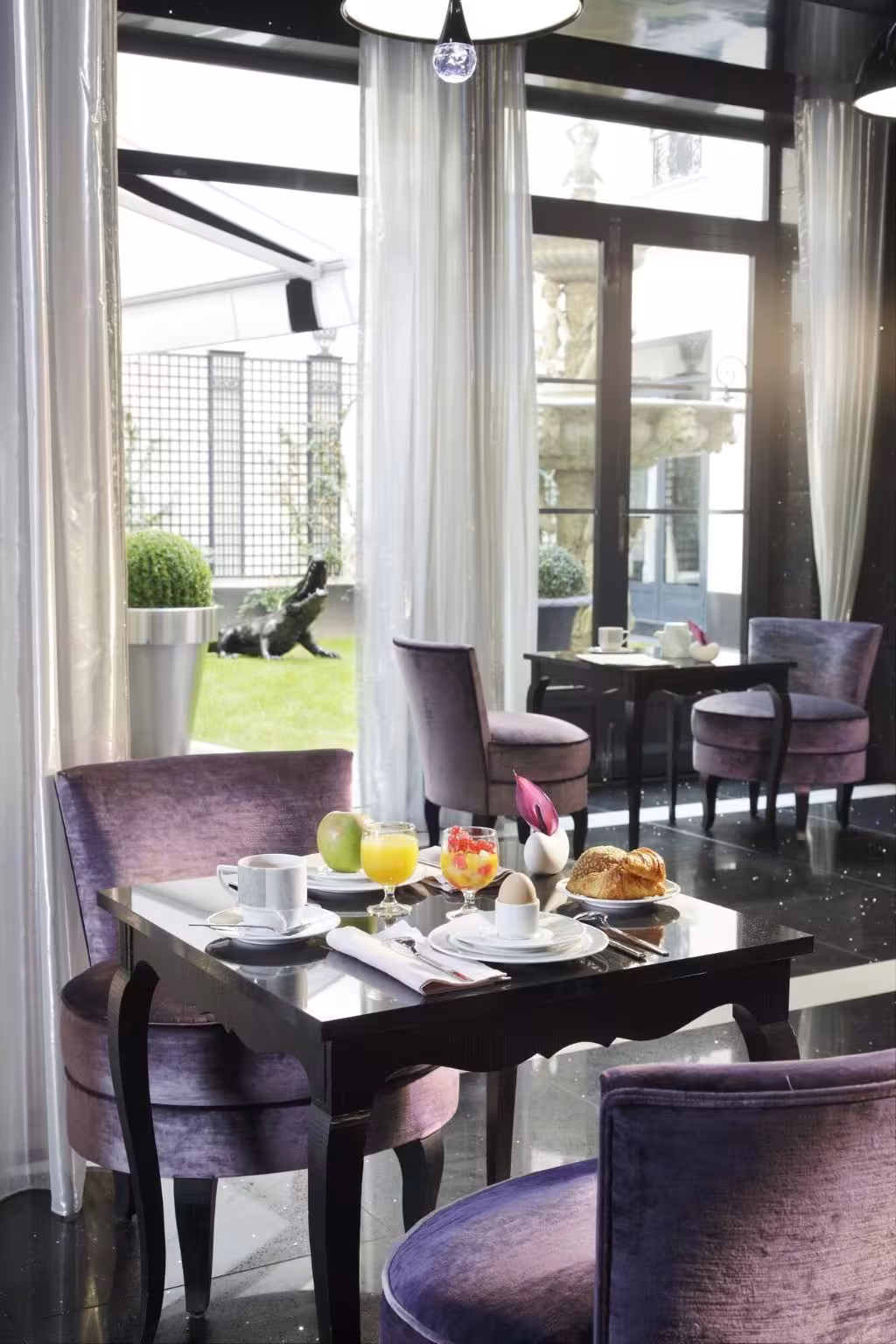 This hotel is close to the centre of Paris, next to Gare St Lazare train station (100 m), near to the huge Haussmann department stores (300 m), Madeleine and Opéra metro stations and numerous luxury shops and cultural institutions such as the Opéra Garnier (500 m). It lies 1.5 km from the Champs Elysées and 8 km from the Bois de Boulogne. Charles de Gaulle and Orly airports are both 30 km from the hotel.