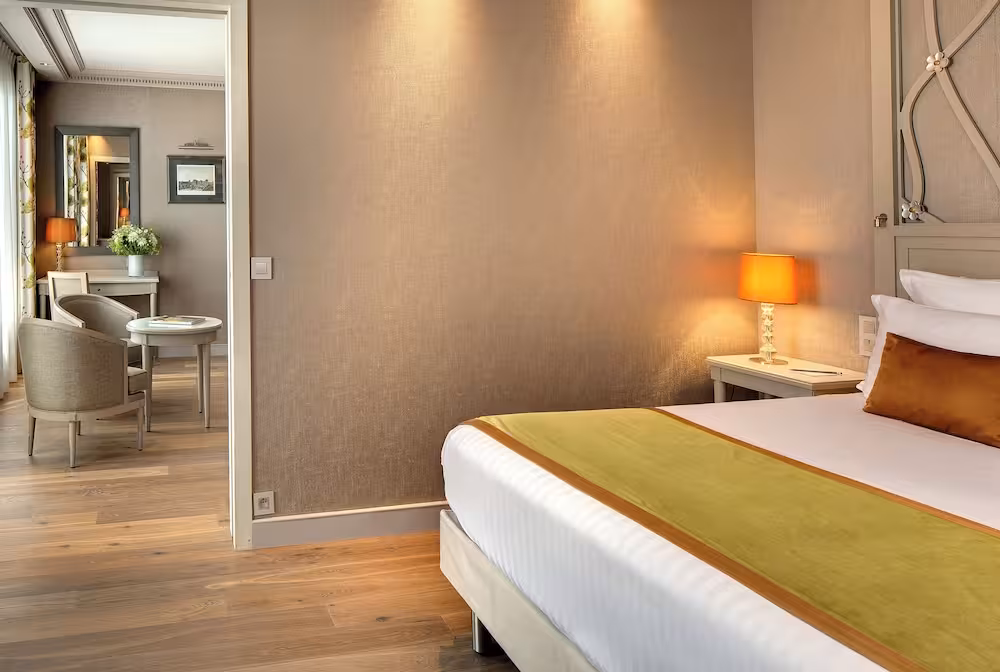 Air conditioning and central heating ensure that rooms maintain comfortable temperatures. All rooms are carpeted and have a double bed or a king-size bed. Children's beds can be requested for younger guests. A safe, a minibar and a desk are also available. Additional features include a mini fridge and a tea/coffee station. An ironing set is provided for guests' convenience. A direct dial telephone, a television with satellite/cable channels, a radio and WiFi (no extra charge) are provided as well. Bathrooms are equipped with a shower and a bathtub, as well as a hairdryer. For extra comfort in the bathrooms, guests are offered cosmetic products. Guests can also book wheelchair-friendly rooms with wheelchair-accessible bathrooms. The hotel has family rooms and non-smoking rooms.