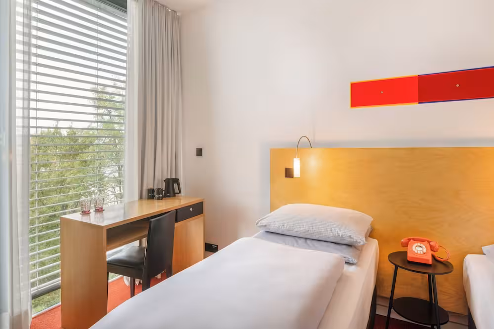 This city hotel is ideally located in Düsseldorf's city centre, close to the exhibition centre and the airport. A stop for public transport is located directly in front of the hotel and the old town is easily reached within a number of minutes.