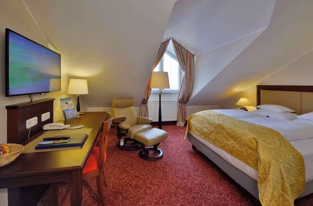 The hotel was modernised in 2022. Guests can enjoy the pleasant ambience of one of the 5 junior suites, 2 suites, 39 single rooms and 78 double rooms. The multilingual staff at the reception desk in the lobby are ready to assist you with check-in and check-out. Guests receive a welcome drink upon arrival. Amenities include a cloakroom, baggage storage service, safe, currency exchange service and drinks machine. Wireless internet access in public areas allows guests to stay connected. The tour desk offers assistance with booking excursions. A lift and wheelchair-accessible facilities are available. A fireplace creates a cosy atmosphere. The grounds of the hotel feature a playground and a lovely garden. Additional amenities include a TV room and a playroom. Guests arriving by car can park their vehicles in the garage or in the car park (for a fee). Further services and facilities include a transfer service, room service, an alarm call service, a laundry service, a coin-operated laundry and a hotel shuttle bus. Active guests who wish to explore the surrounding area by bike will appreciate the bicycle hire service. Bicycle storage is also available. Daily newspapers will keep you informed. A business centre with projector, a flip chart and pens and photocopier is available. Events such as conferences, symposia, lectures etc., but also simple day-to-day business, can easily be arranged with the help of the secretarial service and the conference service.