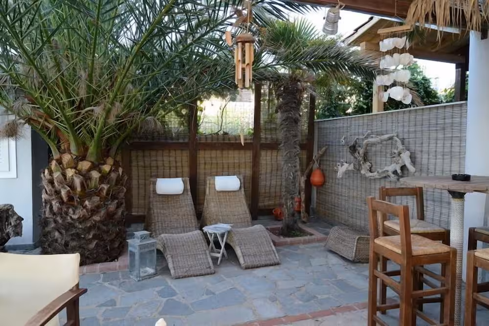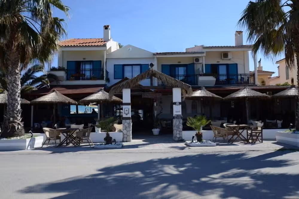 This hotel is located in Polichrono, right on the beach.