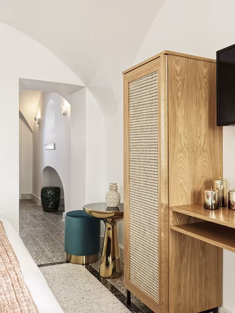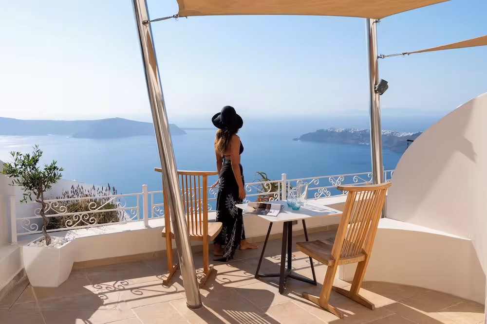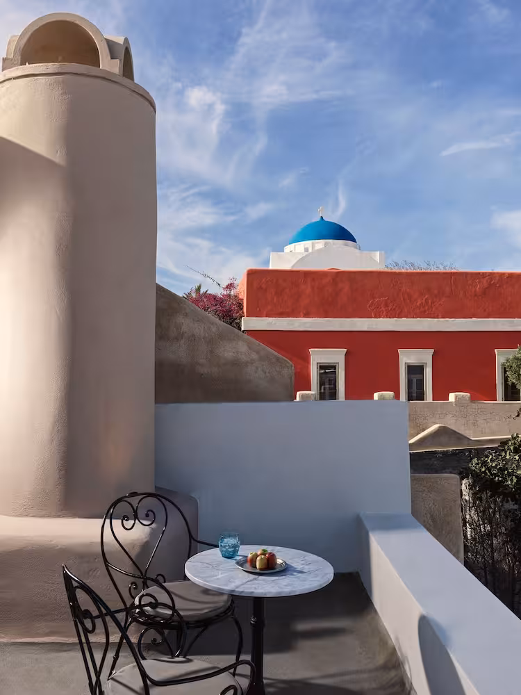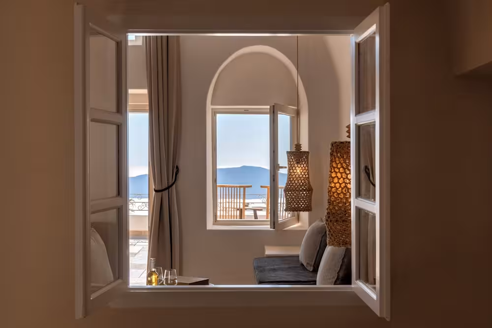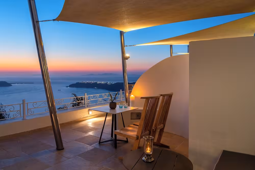 The hotel is located at the highest point of the caldera, about 250 m above the sea at the top of the traditional village of Imevigli. Guests will reach the centre of Fira from here in approximately 3 km.