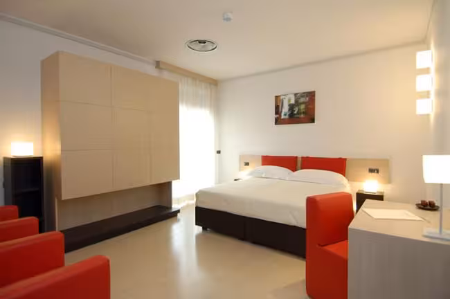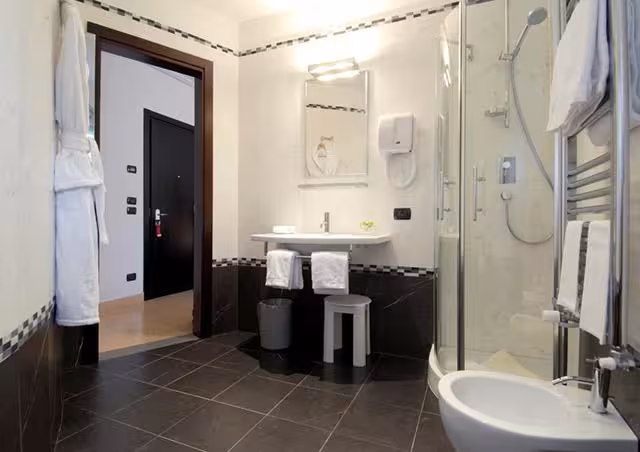 Rooms are equipped with air conditioning and central heating. Rooms include a double bed. Extra beds can be requested. A safe, a minibar and a desk are also available. A telephone, a TV and WiFi (no extra charge) are provided as well. Bathrooms are equipped with a shower and a bidet, as well as a hairdryer. For extra comfort in the bathrooms, guests are offered cosmetic products. Wheelchair-friendly rooms with wheelchair-accessible bathrooms are also available. The hotel has family rooms and non-smoking rooms.