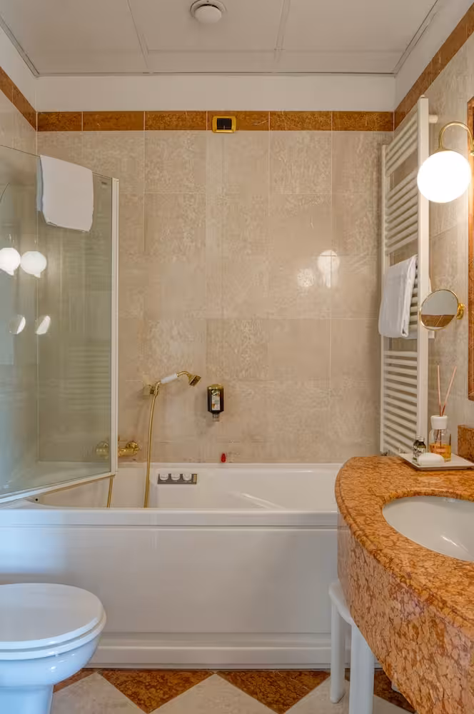 Air conditioning and central heating ensure that rooms maintain comfortable temperatures. A balcony or terrace is among the standard amenities of some rooms. Rooms include a double bed. Children's beds can be requested for younger guests. A safe and a minibar are also available. A telephone, a TV, a radio and WiFi (for a fee) provide all the essentials for a comfortable holiday. Bathrooms are equipped with a shower and a bathtub, as well as a hairdryer. The hotel has family rooms and non-smoking rooms.