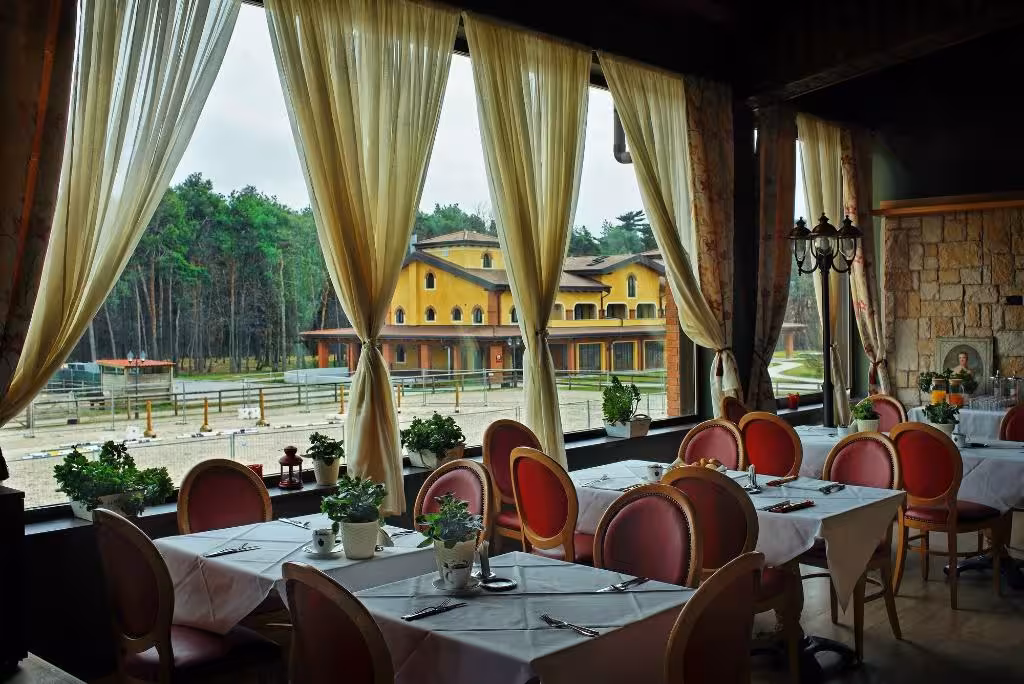 Dining facilities include a restaurant, a café and a bar. Breakfast and lunch are served every day. There are meals available for those with special dietary requirements: diet meals and children's meals. The hotel also offers special catering options.
