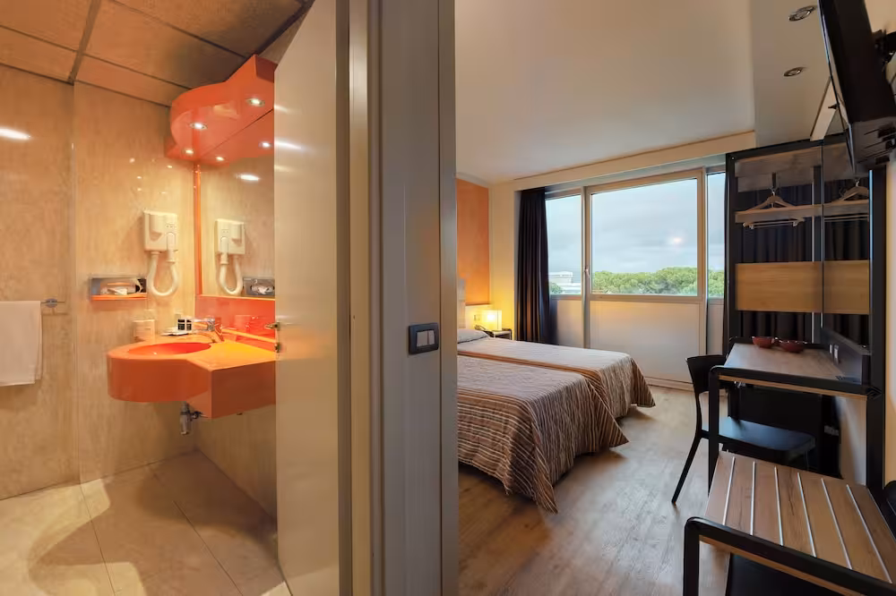 Air conditioning and individually adjustable heating ensure that rooms maintain comfortable temperatures. Rooms have a double bed or a king-size bed. Children's beds can be requested for younger guests. A safe and a minibar are also available. Guests will also find a mini fridge included among the standard features. A direct dial telephone, a TV and WiFi (no extra charge) provide all the essentials for a comfortable holiday. Bathrooms are equipped with a shower, a bathtub and a bidet. For additional convenience, bathrooms also provide a hairdryer. Guests can also book wheelchair-friendly rooms with wheelchair-accessible bathrooms. The hotel has family rooms and non-smoking rooms.