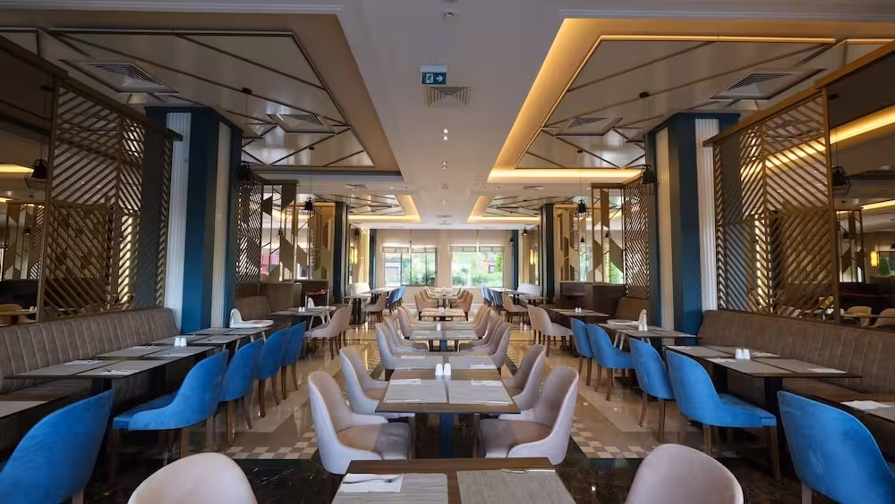 Various dining options are available, including a bar and a lobby bar. Warm hospitality and a cosy atmosphere await guests in 4 non-smoking restaurants. Refreshing drinks at the beach bar are a perfect way to enjoy warm weather. All-inclusive special is offered as a catering option. A generous and varied breakfast buffet (also for early birds and late risers) provides many delicious reasons to rise and shine. At lunch and dinner, guests serve themselves at the buffet. Special meals, including diet meals, are also available. The resort also offers snacks. For guests, alcoholic and non-alcoholic drinks are included.