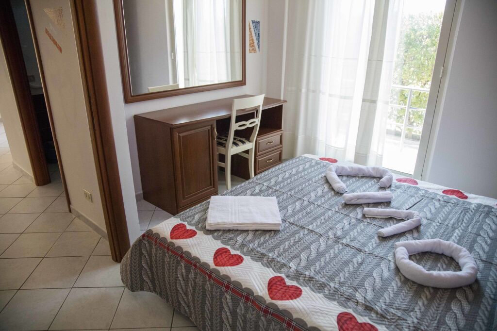 Air conditioning and a fan ensure that rooms maintain comfortable temperatures. Guests can enjoy the sea view from a balcony or terrace. Rooms include a sofa bed. Separate bedrooms can be booked. Children's beds can be requested for younger guests. A kitchenette with a stovetop is also provided. An ironing set is provided for guests' convenience. A TV and WiFi are provided as well.