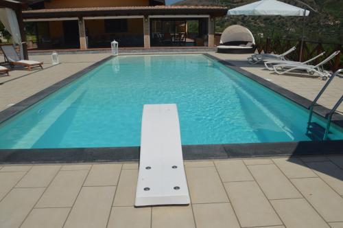 The outdoor pool complex ensures comfortable swimming with its soothing salt water. A terrace with sun loungers and parasols is available. There are many ways to relax or stay active at the accommodation, including horse riding, diving, massage treatments, a solarium and hiking.