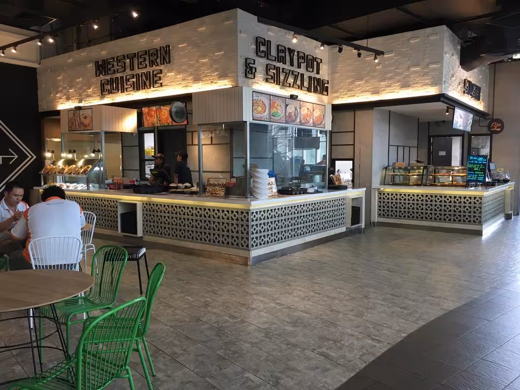 The dining area includes a restaurant and a café.
