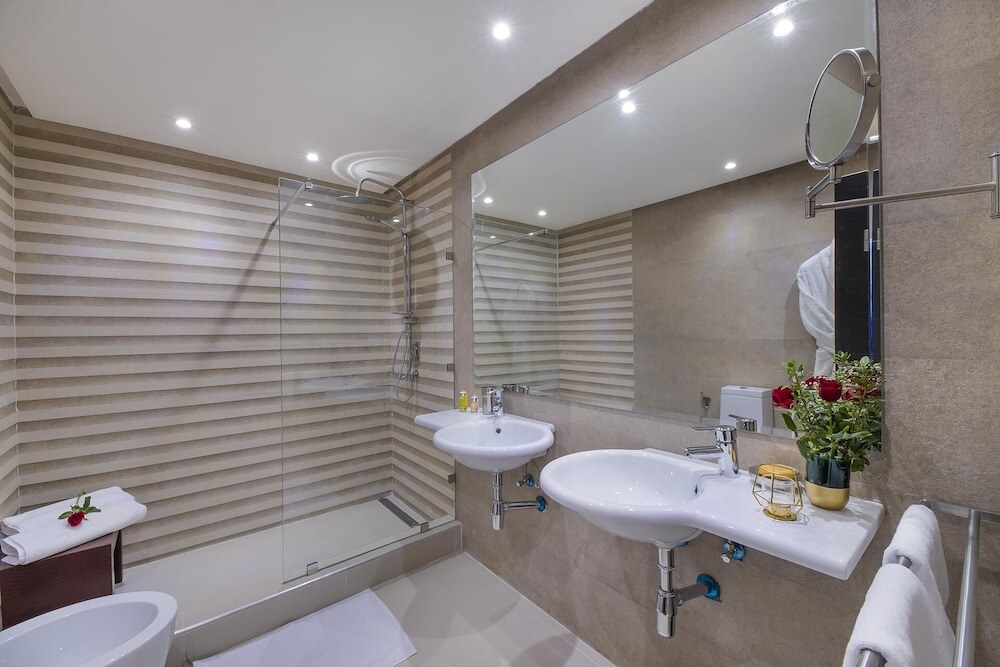 The outdoor pool complex provides invigorating refreshment. There are many ways to relax or stay active at the hotel, including a gym, a spa, a sauna and a hammam.