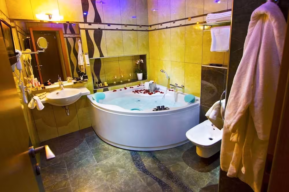 Air conditioning, central heating and a fan ensure that rooms maintain comfortable temperatures. All rooms are carpeted and include a double bed. Extra beds can be requested. A safe, a minibar and a desk are also available. Guests will also find a tea/coffee station included among the standard features. An ironing set is provided for guests' convenience. A telephone, a television with satellite/cable channels, a radio, a CD player, a DVD player, a plug adapter and WiFi (no extra charge) are provided as well. Slippers are included. Bathrooms are equipped with a bidet and a hairdryer. As a special feature, bathrooms are also stocked with cosmetic products and a selection of towels. Wheelchair-friendly rooms can be booked. The hotel has family rooms and non-smoking rooms.