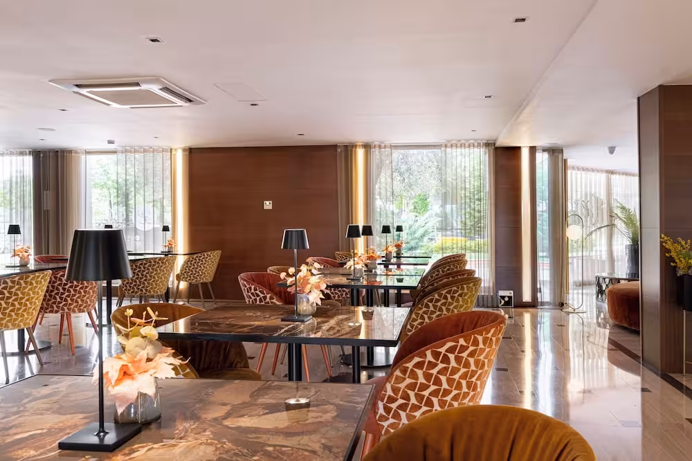This business hotel is located outside of the town centre, just 1 km from shopping venues, restaurants and bars. Public transport departs from stops located just 200 m away.