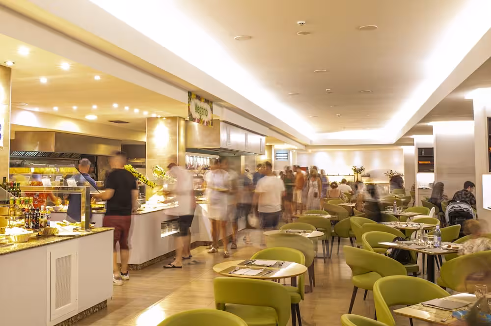 The dining area includes a café. Warm hospitality and a cosy atmosphere await guests in 4 non-smoking restaurants. Catering options include bed and breakfast, half board and all-inclusive special. Breakfast, lunch and dinner will satisfy appetites big and small. Diet meals, gluten-free meals, vegetarian dishes and children's meals can be prepared on request. In addition, special catering options and snacks are available. The show cooking is a particularly special attraction. The hotel offers a selection of alcoholic and non-alcoholic beverages.