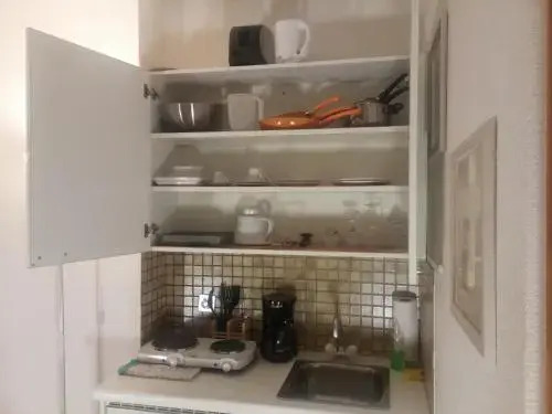 Rooms are equipped with central heating and a fan. Rooms include a double bed. Extra beds can be requested. A safe provides secure storage for guests' personal property. A kitchenette with a refrigerator and a tea/coffee station is also provided as standard. A telephone, a television with satellite/cable channels and WiFi (no extra charge) ensure optimal comfort. Bathrooms are equipped with a shower and a bathtub, as well as a hairdryer. As a special feature, bathrooms are also stocked with cosmetic products and a selection of towels. The hotel has non-smoking rooms.
