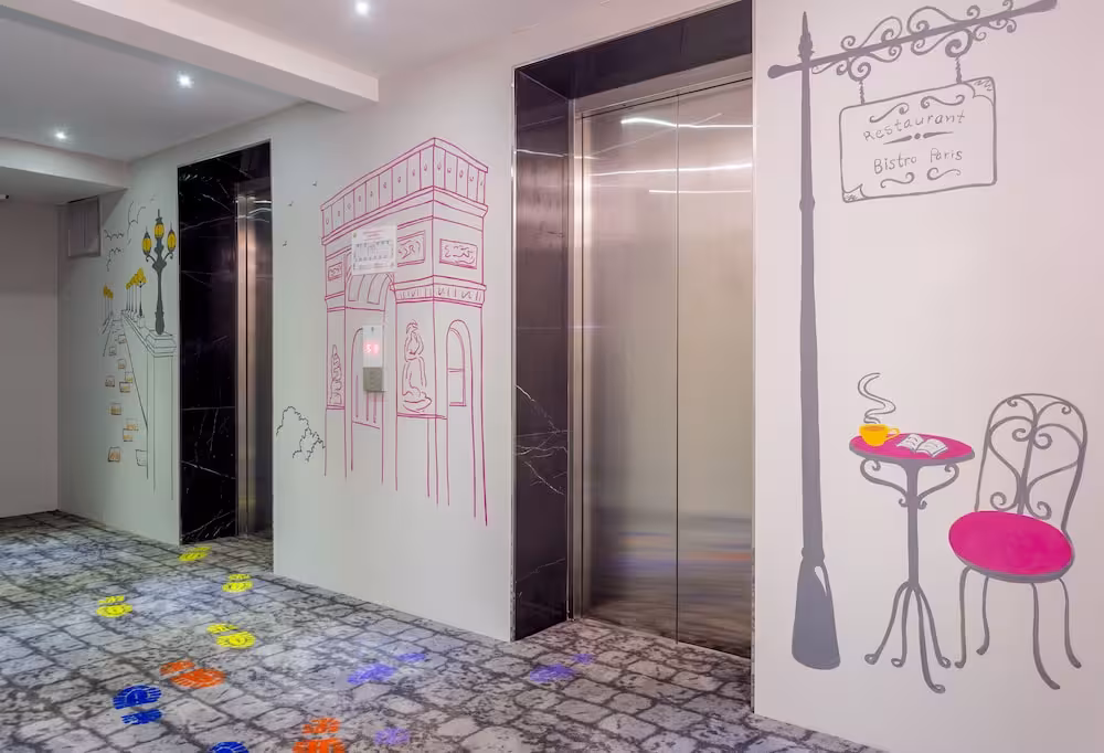 Rooms are equipped with air conditioning. The rooms have a king-size bed and a sofa bed. Extra beds can be requested. A safe, a minibar and a desk are also available. Additional features include a refrigerator and a tea/coffee station. A telephone, a television with satellite/cable channels, an alarm clock and WiFi (no extra charge) ensure optimal comfort. Guests will also find slippers in their rooms. Bathrooms are equipped with a shower and a bathtub, as well as a hairdryer. As a special feature, bathrooms are also stocked with cosmetic products and a selection of towels. Guests can also book wheelchair-friendly rooms with wheelchair-accessible bathrooms. The hotel has family rooms and non-smoking rooms.