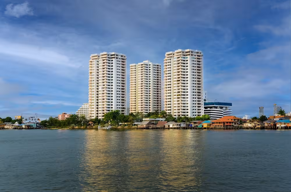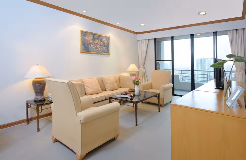 This apartment hotel is situated on the banks of the Chao Phraya River. Guests can relax in natural surroundings and savour the fresh air, panoramic views of the Chao Phraya River and the safe and quiet environment like no other in Bangkok. It is 15 minutes' drive from the Puntip Plaza, 20 minutes' drive from the weekend market and 30 minutes from Ko Kred.