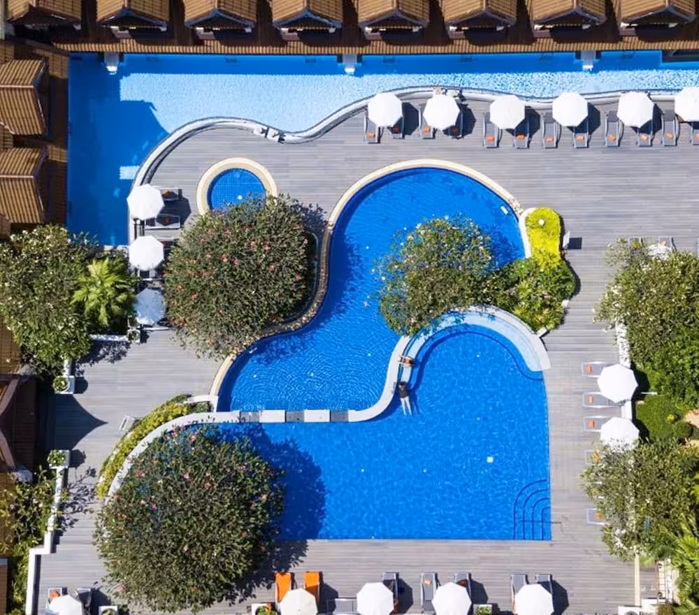 The outdoor pool complex includes a children's swimming area and is ideal for working out or just relaxing. The pool area also includes a hot tub, a waterslide and a pool bar. A short break or an entire afternoon on the sun terrace, which features sun loungers and parasols, is time well spent. Guests can enjoy a wide range of indoor sports, including a gym, table tennis, callisthenics and aerobics. Various wellness options are available at the hotel, including a spa, a sauna, a steam bath, a beauty salon, massage treatments and hydrotherapy treatments. Parents can unwind while the kids can participate in an entertainment programme full of fun activities.