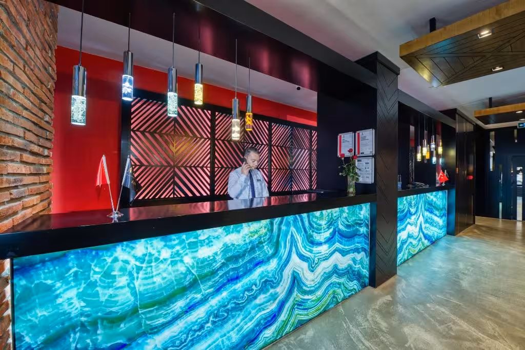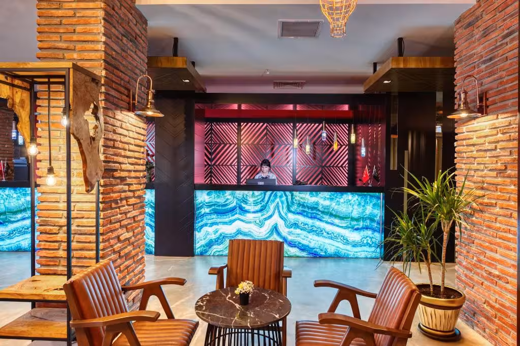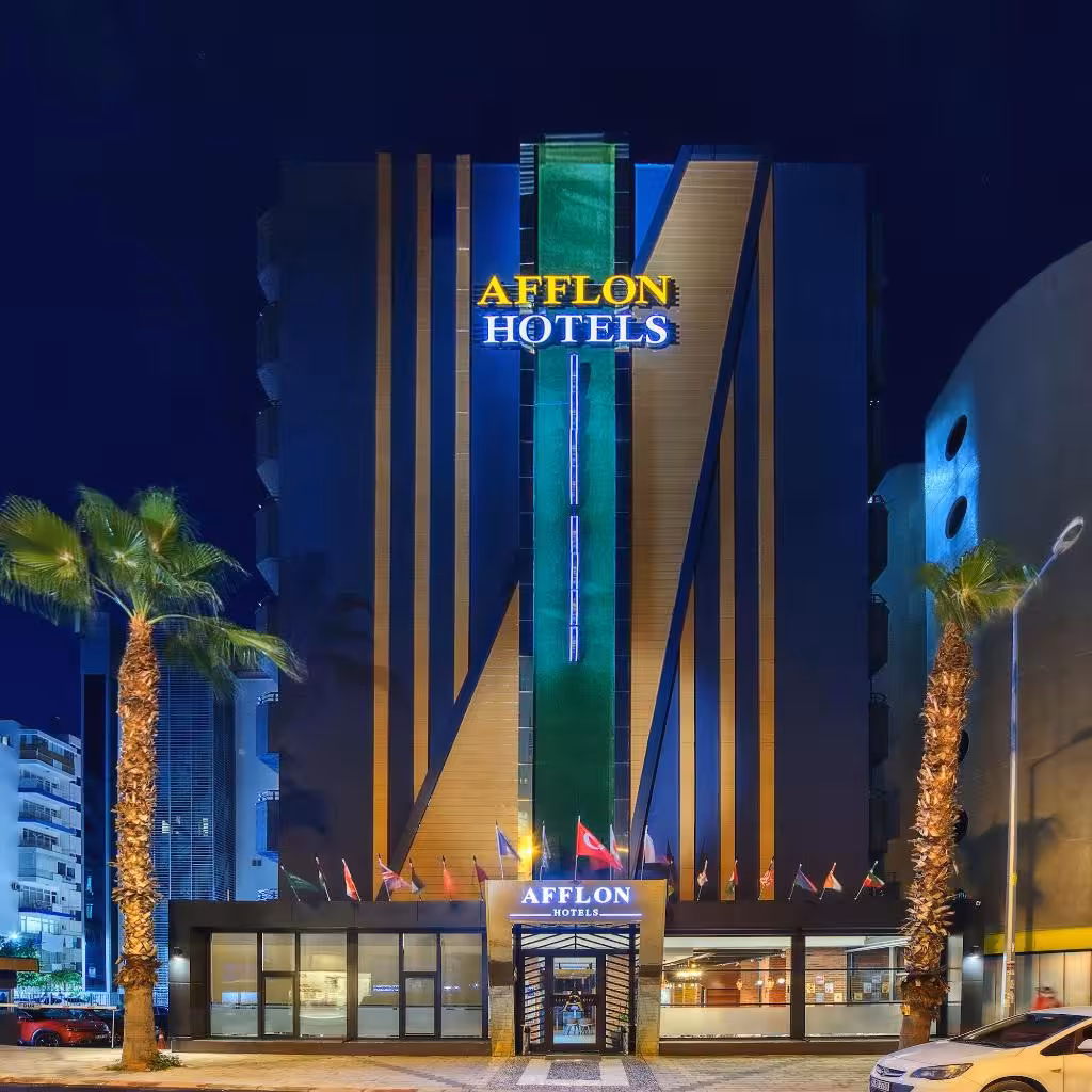 This hotel warmly welcomes guests in Antalya.