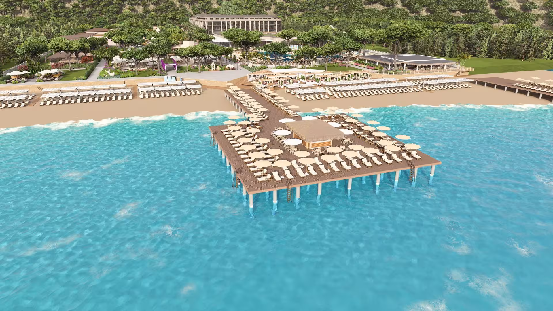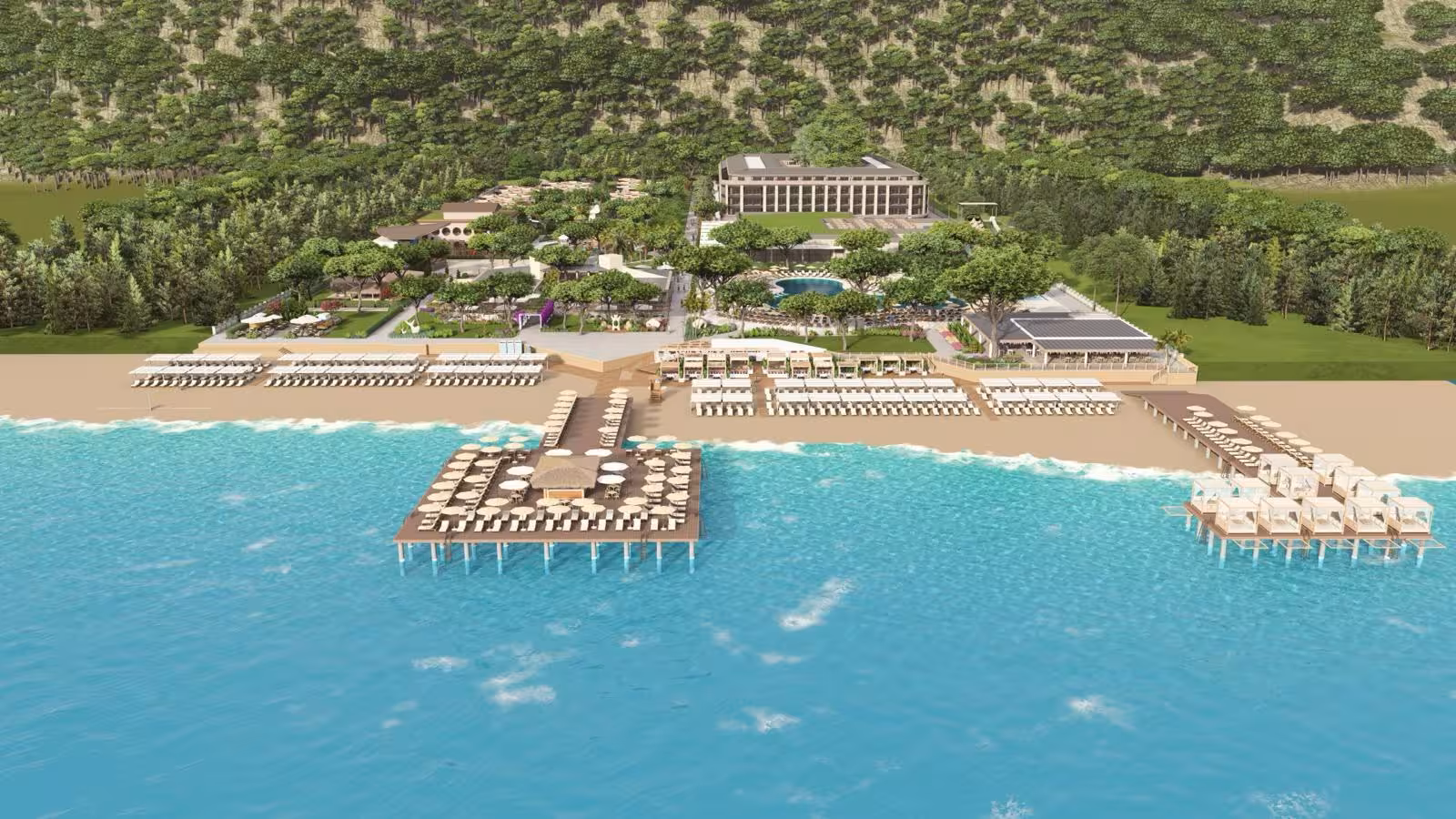 The family-friendly club resort enjoys a special location on the shores of the Turkish Riviera and with the legendary Olympus Mountain and the green forests of the Taurus Mountains in the background. The beachfront hotel enables guests to relax right on the shiny blue waters of the Mediterranean. Kemer and Moonlight Park are approximately 8 km from the bungalow complex, and guests will find restaurants, bars, shops and nightlife in the tourist centre of Göynük, which is around 2 km from the beach hotel. Antalya Airport is approximately 40 km away.