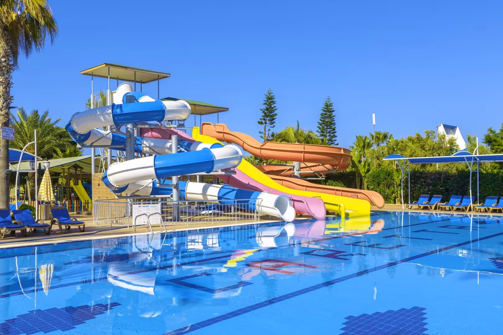 Whether more active or in need of rest and relaxation, guests can unwind at the pool complex, which includes a children's area and a total of 2 swimming pools. A waterslide guarantees plenty of fun for young and old, and the pool bar provides sustenance and refreshing drinks. Parasols and comfortable sun loungers are available on the sun terrace. For guests who wish to keep active, bocce and beach volleyball are available. With windsurfing or, for a fee, water skiing, jet skiing and banana boat rides available, fans of water sports have plenty of options to choose from. The hotel offers numerous indoor sports, including a gym, table tennis, darts, callisthenics and aerobics or, for a fee, billiards. There is a wellness area with a spa, a steam bath, a hammam and a solarium and, for an additional fee, a sauna and massage treatments. Leisure facilities include an entertainment programme, a kids' club, a kids' disco, a dance club and a nightclub.