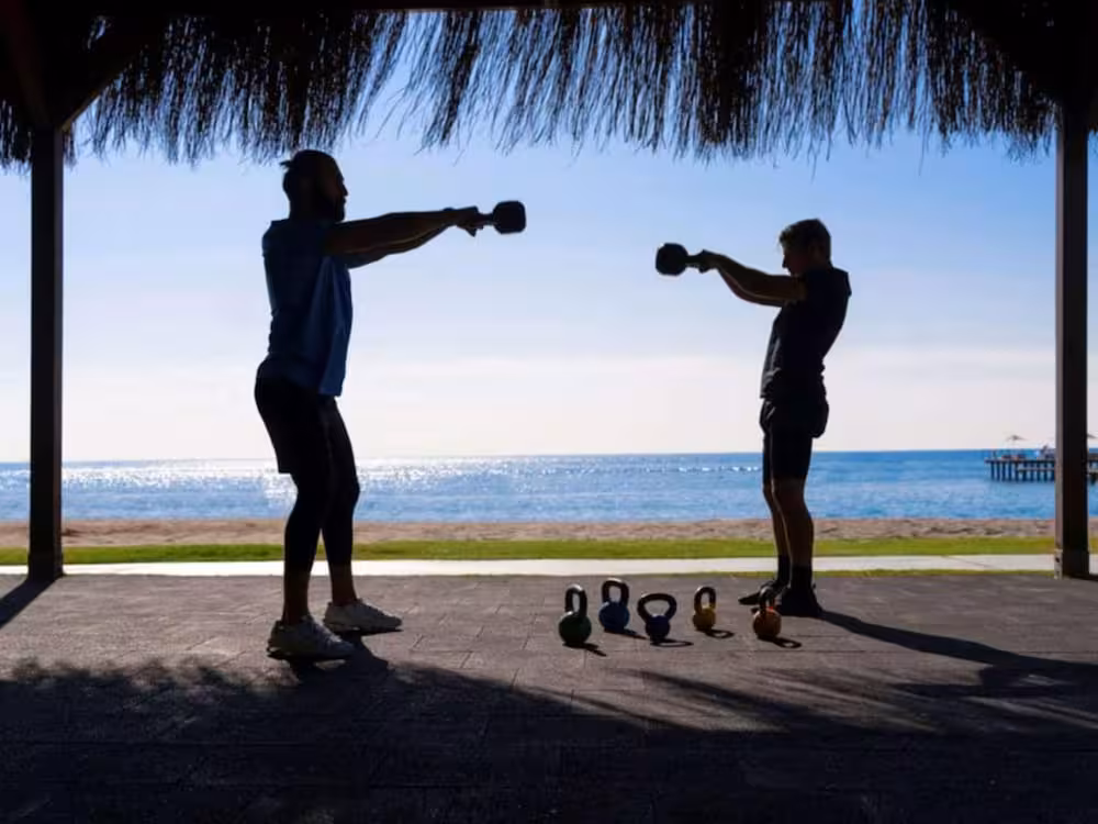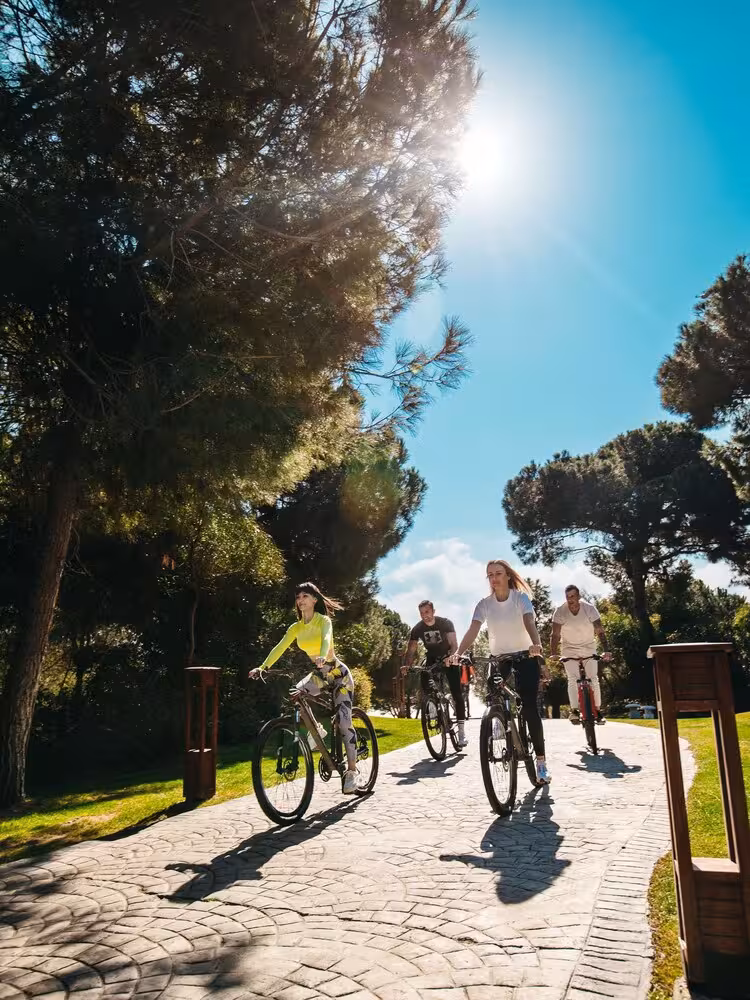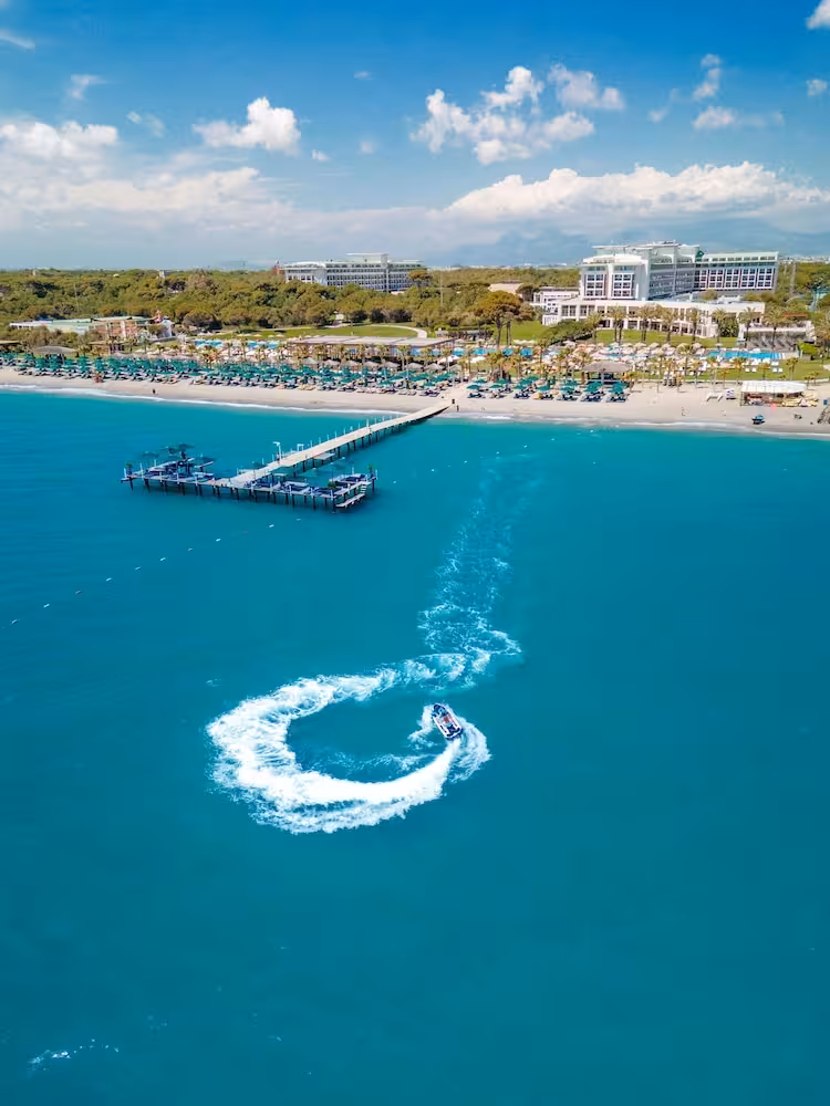 The indoor and outdoor pools are ideal for exercise as well as relaxation. A terrace with sun loungers and parasols is available. Refreshing drinks are served at the poolside snack bar. The hotel offers an extensive outdoor sports programme, including cycling/mountain biking, tennis, volleyball, basketball and golf. Water sports enthusiasts are offered banana boat rides. Guests can enjoy a wide range of indoor sports, including a gym, table tennis, bowling, yoga, aerobics and pilates. Various wellness options are available at the hotel, including a spa, a sauna, a steam bath, a hammam and massage treatments. Additional leisure activities include an entertainment programme, a kids' club and live music.