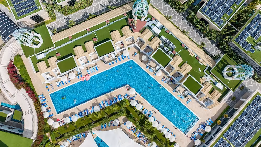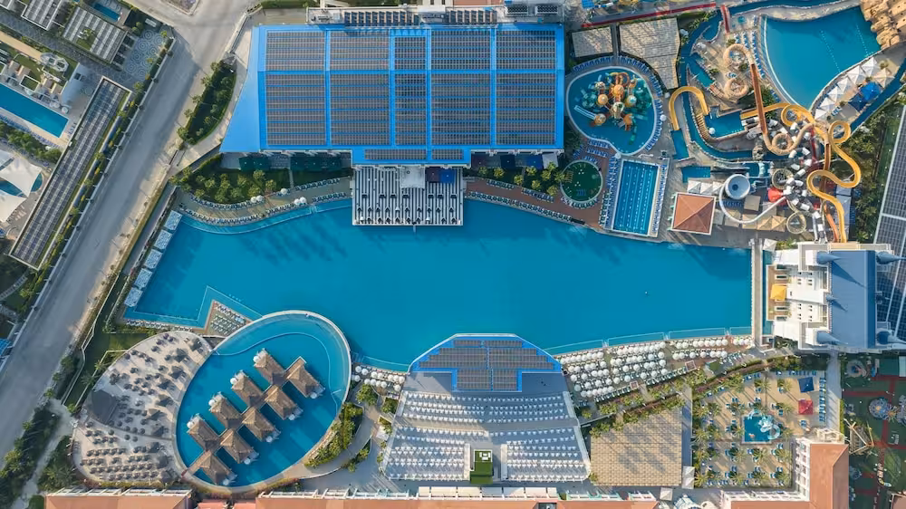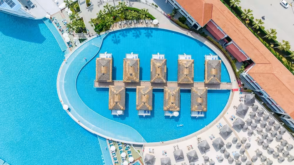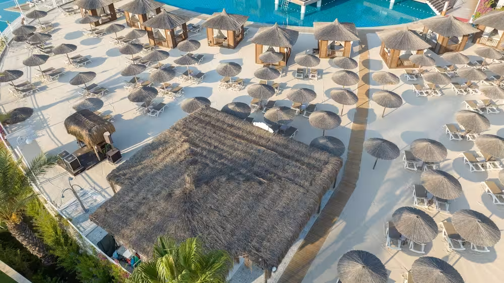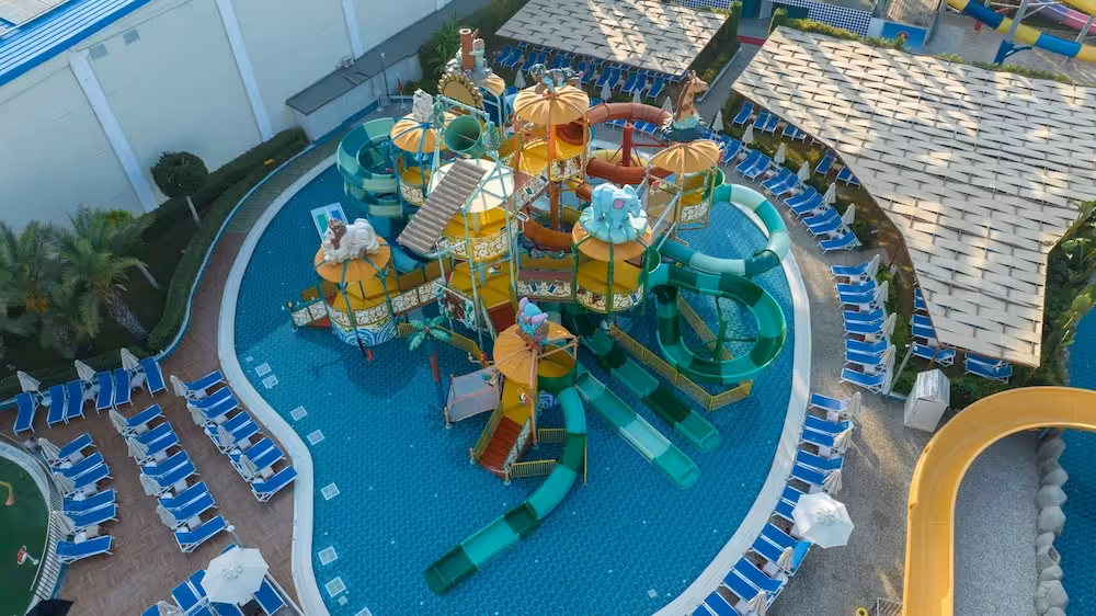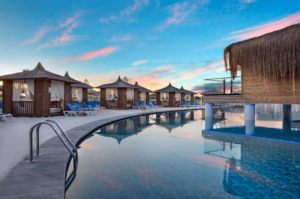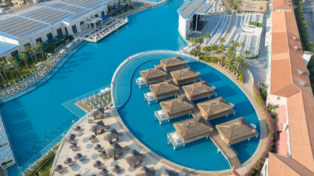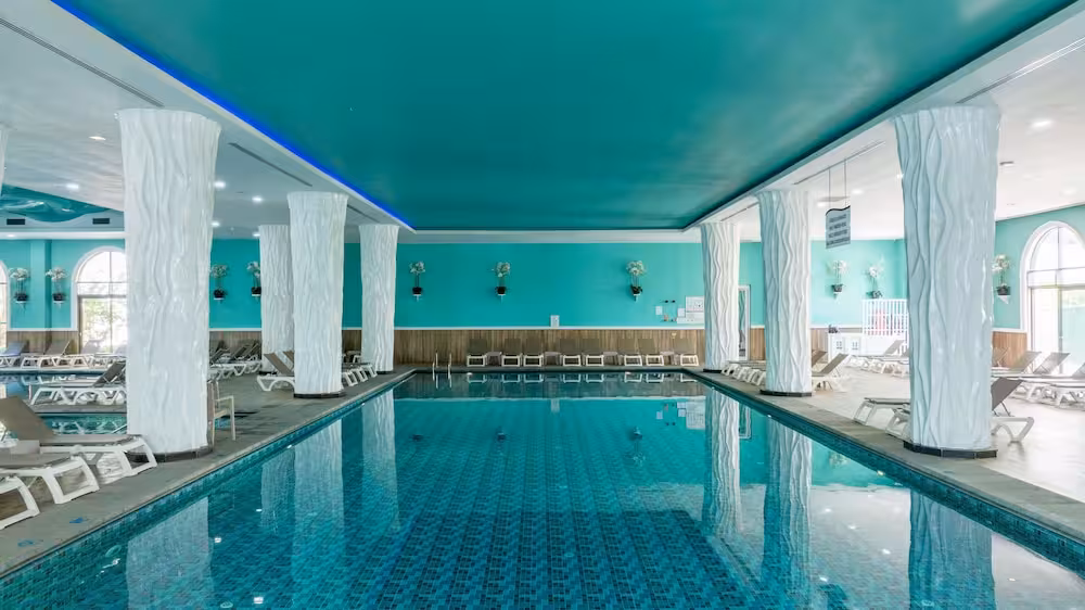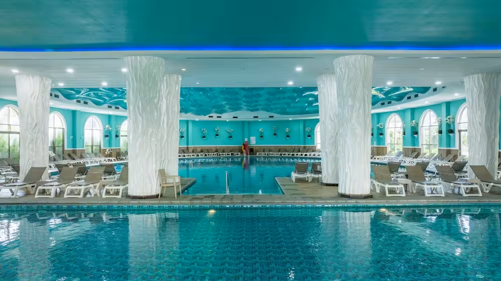 The pool complex, which includes 6 outdoor pools (no extra charge) and 4 children's pools is a great place to work out or just relax and unwind. A waterslide and a refreshing drink at the poolside snack bar offer the perfect way to unwind. A short break or an entire afternoon on the sun terrace, which features sun loungers and parasols, is time well spent. The resort offers an extensive outdoor sports programme, including tennis, bocce, beach volleyball and volleyball. Water sports enthusiasts can enjoy water aerobics and aquafit. The resort offers numerous indoor sports, including a gym, table tennis, darts, yoga, callisthenics and aerobics or, for a fee, bowling. Various wellness options, such as a spa and massage treatments, are offered for a fee. Third-party operators offer a spa, a sauna, steam bath, hammam and massage treatments. Additional leisure activities include a kids' club, a kids' disco, live music and a nightclub.