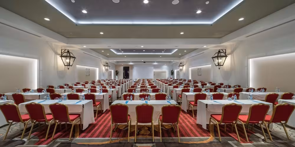 In addition to 6 villas/houses, this spacious property includes a residential complex, made up of a 9-storey main building and an auxiliary building. Guests have the choice between 986 rooms, including 18 suites and 681 double rooms. English- and German-speaking staff at the reception desk in the lobby are ready to assist you with check-in and check-out. Guests receive a welcome drink upon arrival. Amenities include a cloakroom, a baggage storage service and a cash machine. Wireless internet access is provided in public areas (no extra charge). The tour desk offers assistance with booking excursions. The resort has a range of facilities for guests with disabilities. Wheelchair-accessible facilities are available. Film fans will find plenty of 'lights, camera, action' at the cinema. A number of shops, including a supermarket and souvenir shop, are great for shopping or just browsing. Additional amenities include a playroom and a library. Vehicles can be parked in the garage (no extra charge), subject to availability. Other services include a 24-hour security service, a car hire service, medical assistance, room service (limited hours and for a fee), a laundry service, a hairdresser, a coin-operated laundry and a page service. A business centre with fax machine, projector, a flip chart and pens and photocopier is available. The congress service offers support with all aspects of event organisation. 3 conference rooms are available for lectures, presentations and meetings.