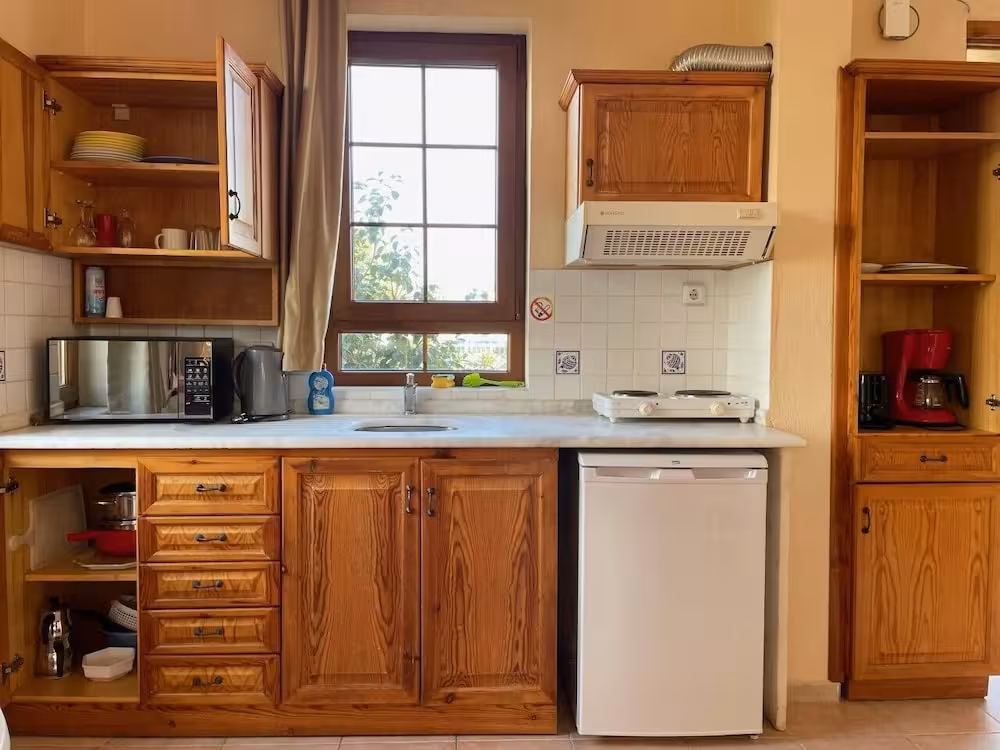 Air conditioning and central heating ensure that rooms maintain comfortable temperatures. A balcony is included as standard in some rooms. All rooms are carpeted and include a double bed or a king-size bed. Separate bedrooms are available. Guests may securely store their valuables in a safe. The kitchenette comes with a stovetop and an oven. A direct dial telephone, a TV and WiFi (no extra charge) provide all the essentials for a comfortable holiday. Cleaning on departure is among the services offered. Bathrooms are equipped with a shower. The hotel has family rooms and non-smoking rooms.