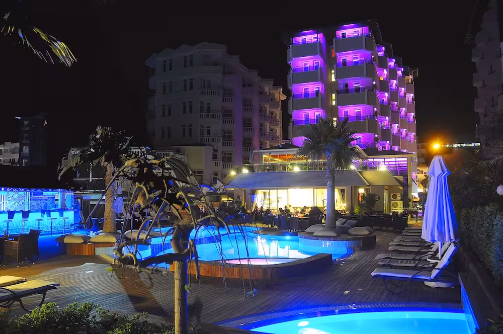 Ideally located on Alanya's famous Kleopatra's Beach and within close proximity of the resort centre and its many amenities, this beach hotel is also within easy reach of Alanya's tourist attractions, such as the Red Tower (2 km away), Alanya Castle (3 km away) and Damlataş Caves (1 km away). Guests will find bars, restaurants and links to the public transport network in the immediate vicinity, while nightlife spots and numerous shops can be found around a 10-minute ride away using public transport. Gazipaşa is approximately 35 km from the city hotel and Antalya Airport is around 120 km away.