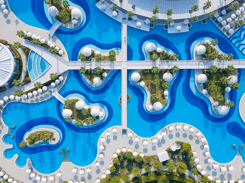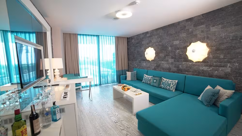 The pool complex ensures comfortable swimming with its indoor and outdoor pools and pleasantly heated water. Children can enjoy a special swimming area just for them. The pool area also includes a hot tub, a waterslide and a pool bar. A sun terrace, sun loungers, and parasols are available. The wide range of activities offered at the hotel ensures that there is something new to do every day, including cycling/mountain biking, tennis, bocce, beach volleyball, basketball, crazy golf, golf and archery. Water sports enthusiasts can enjoy water skiing, water aerobics and aquafit. Guests can enjoy a wide range of indoor sports, including a gym, table tennis, billiards, darts, bowling, callisthenics and aerobics. Various wellness options are available at the hotel, including a spa, a sauna, a steam bath, a hammam and massage treatments. Additional leisure activities include an entertainment programme, a kids' club, live music, a dance club and a nightclub.