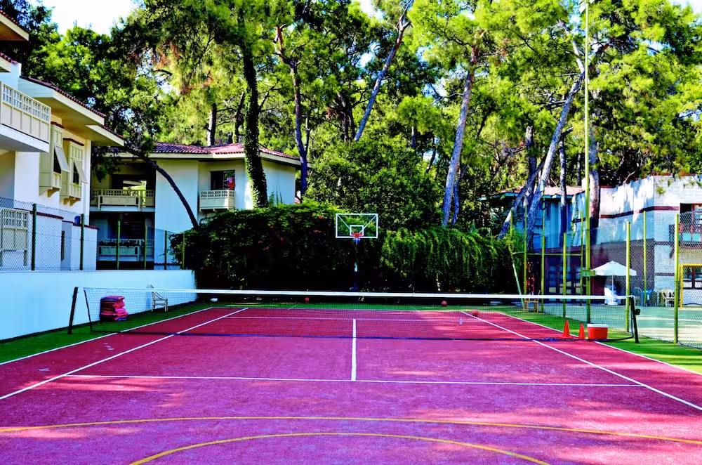 This family-friendly hotel is situated by the beach in a location where the green of the Taurus Mountains’ pine forests meets the blue of the Mediterranean Sea. The local town of Göynük is just 2 km from the establishment and guests can find a range of restaurants, bars, pubs and shops there. Kemer is some 7 km away and features a number of nightlife spots. Other nearby attractions include Phaselis Antic City (30 km), Antalya (40 km) and Myra (120 km). Antalya Airport is just 45 km from the accommodation.