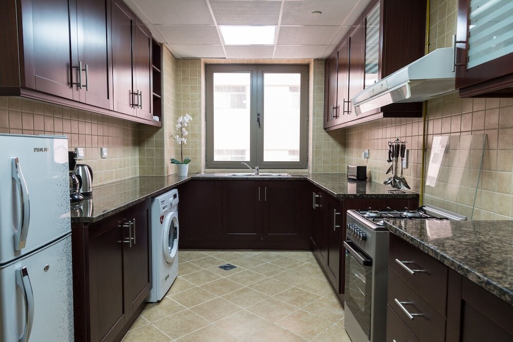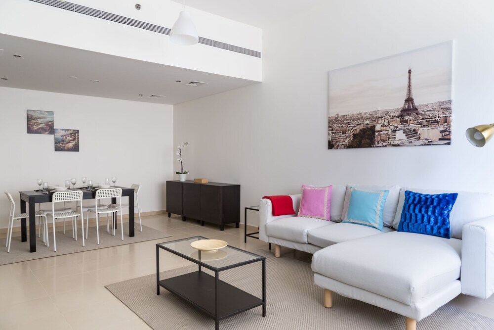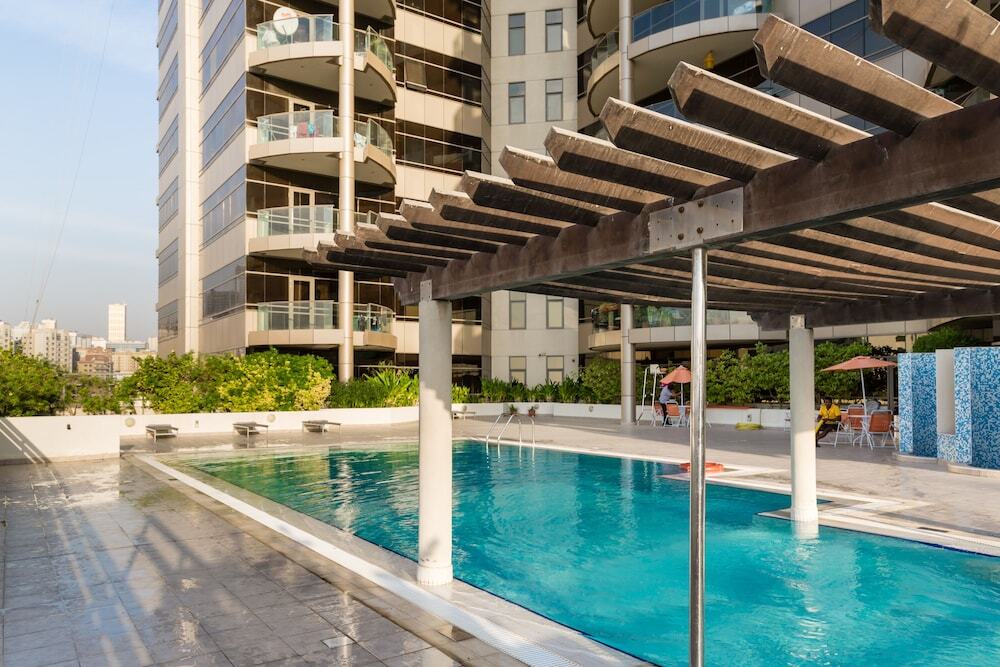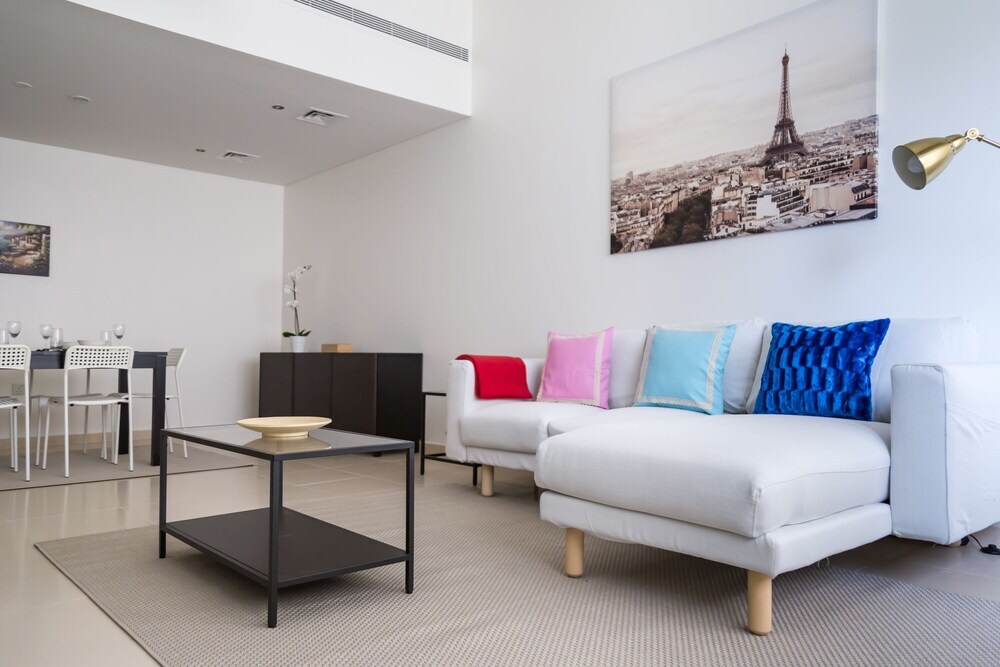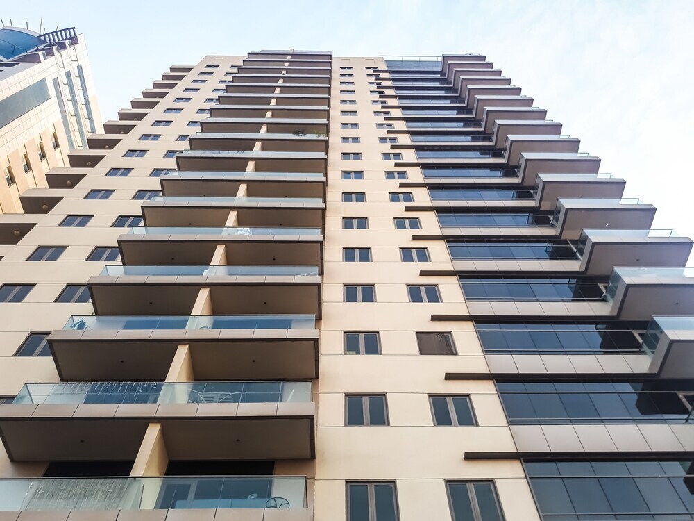 This apartment complex welcomes guests in Dubai.