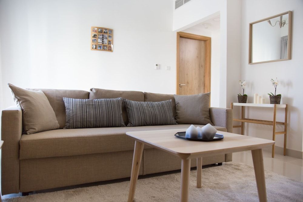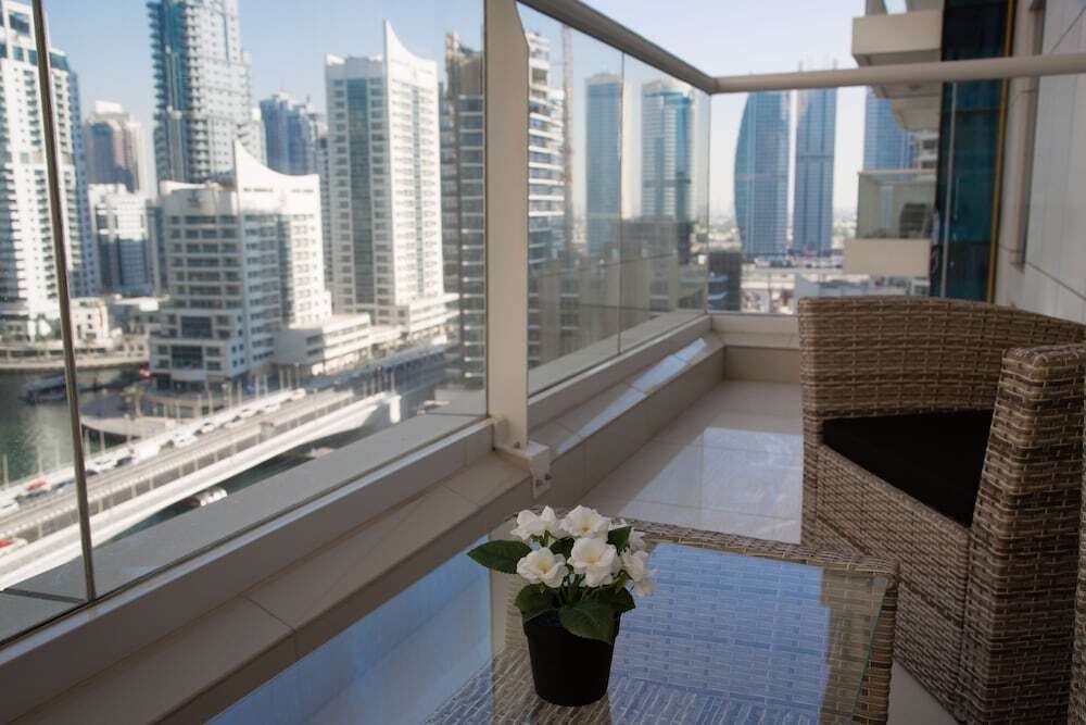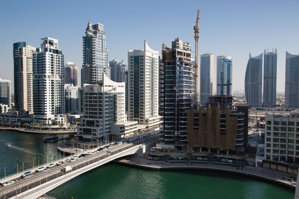 This apartment complex welcomes guests in Dubai.
