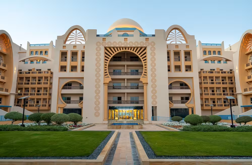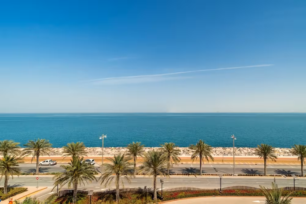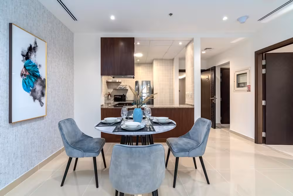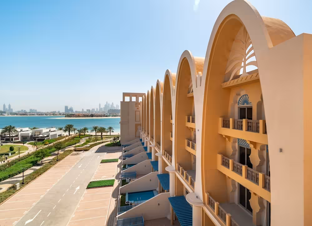This apartment complex welcomes guests in Dubai.