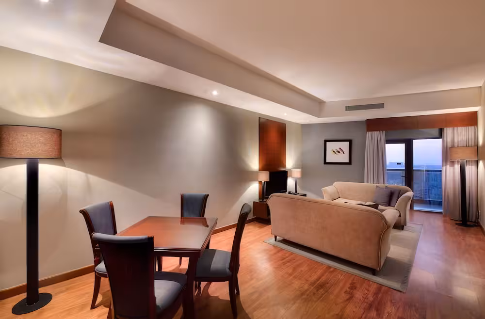 The hotel is located in the heart of downtown Dubai in the Bur Dubai area. It is near to key business and leisure destinations in the city, making it an ideal base for all travellers, be they corporate guests or tourists. Most multinational companies, banks and other corporate offices are nearby, many within walking distance of the hotel. A variety of shopping malls as well as textile and computer markets are a few minutes' walk from the hotel, along with legendary shopping area of Meena Bazar, the Dubai Museum and the Ruler's Court. The impressive Shaikh Zayed Road, lined with some of the most beautiful and architecturally awe-inspiring skyscrapers in the world, is a short drive from the hotel. The diplomatic area, Port Rashid and the Dry Docks are also a short distance away. Delegates attending exhibitions and events at the Trade Centre and the International Convention Centre will find themselves conveniently close to these areas.