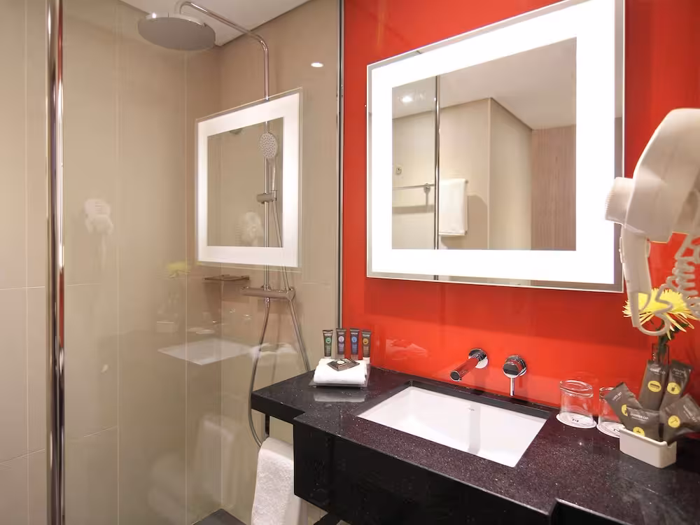 Rooms include a sofa bed. A safe and a desk are also available. Guests will also find a tea/coffee station included among the standard features. Further amenities include an ironing set and a trouser press. A flatscreen television and WiFi are provided as well. Guests will also find slippers in their rooms. Bathrobes are provided in the bathrooms. For extra comfort in the bathrooms, guests are offered cosmetic products. 6 wheelchair-friendly rooms with wheelchair-accessible bathrooms are also available. The hotel has 346 non-smoking rooms and smoking rooms.