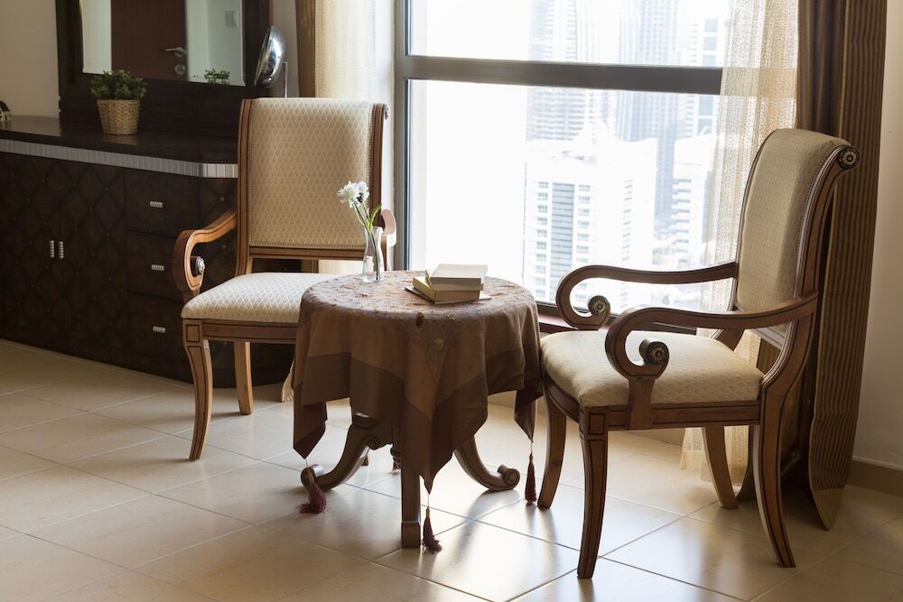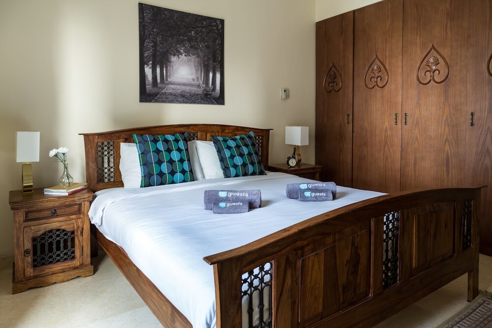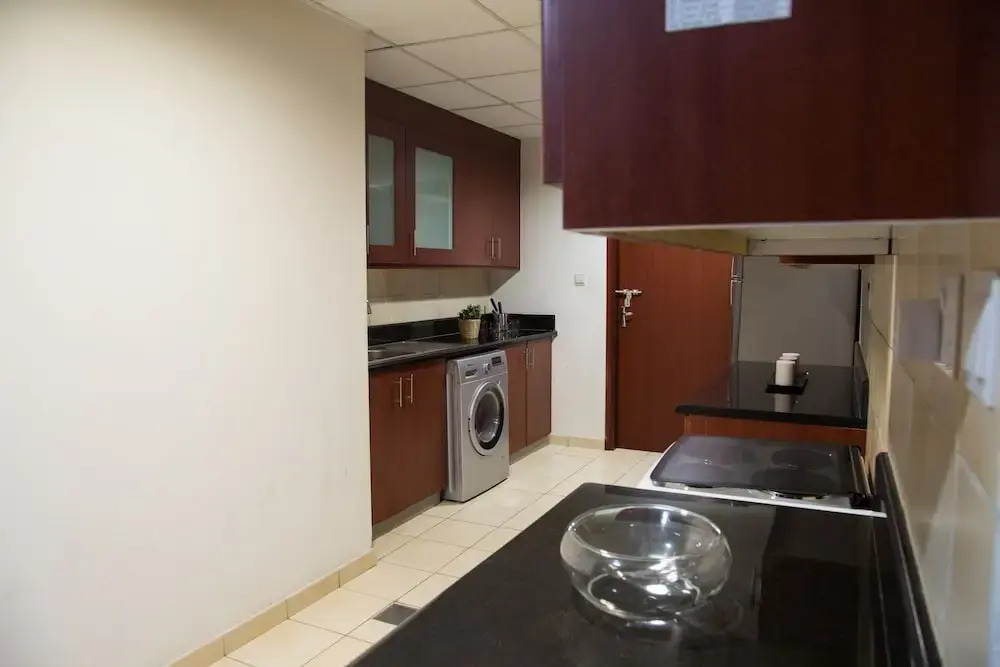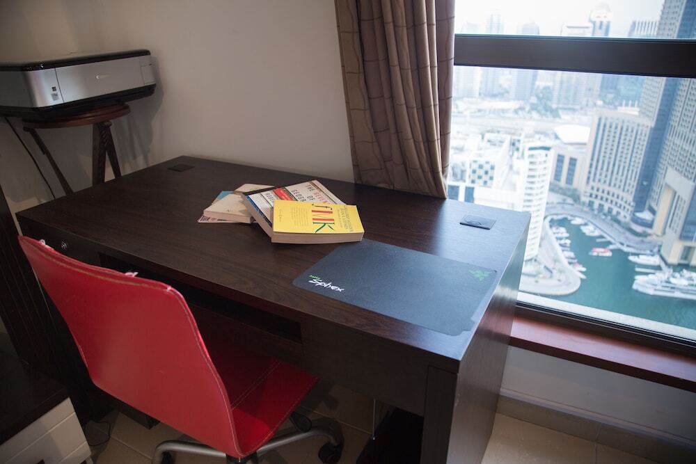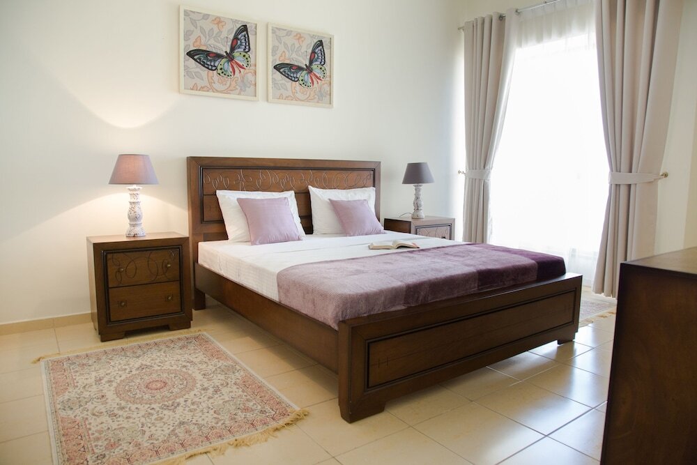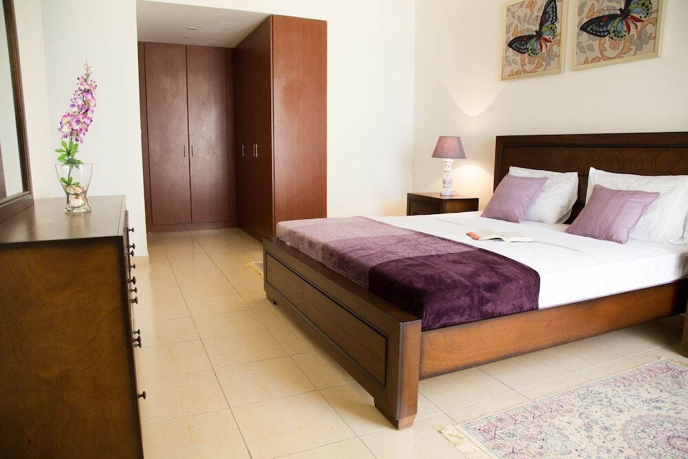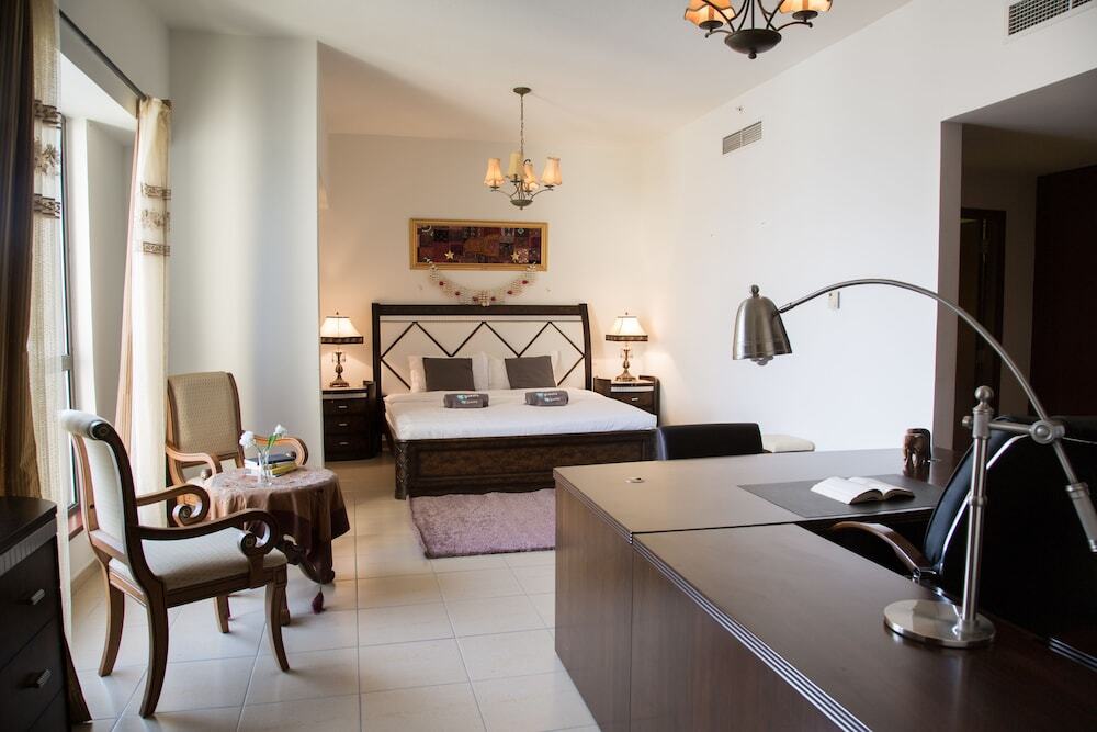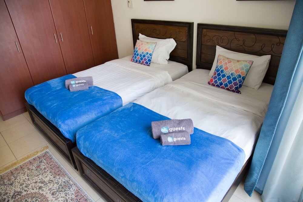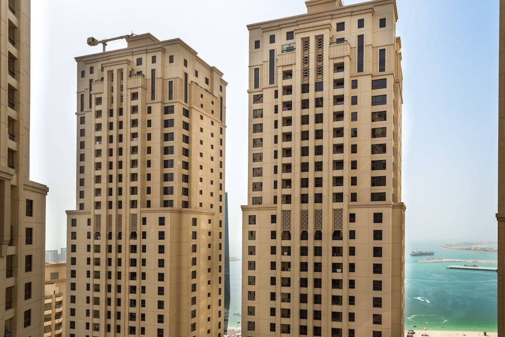 This apartment complex welcomes guests in Dubai.