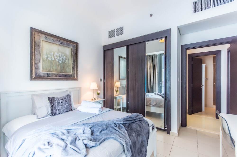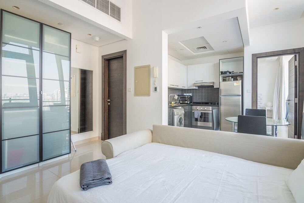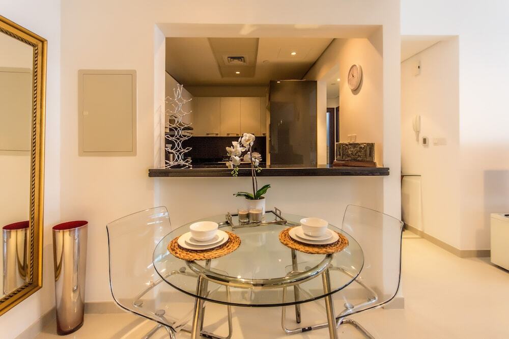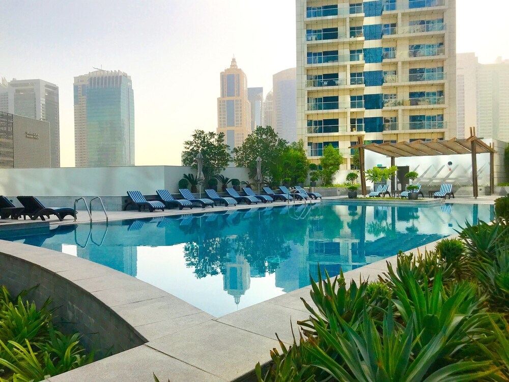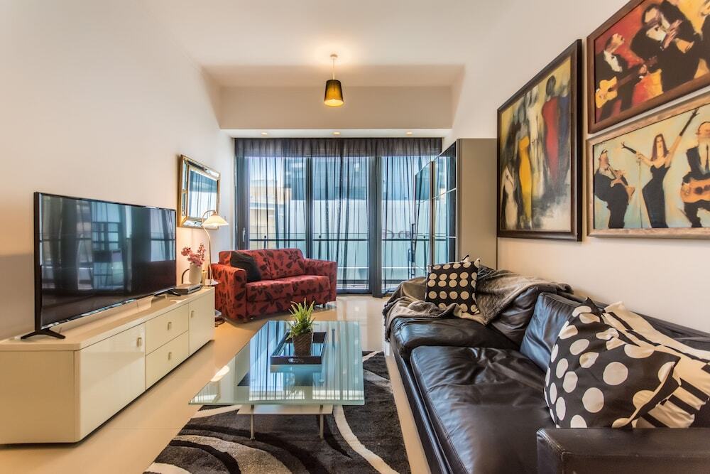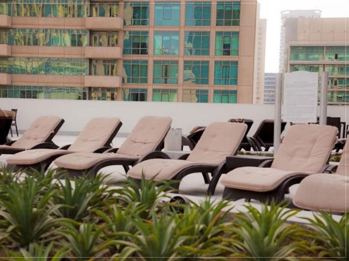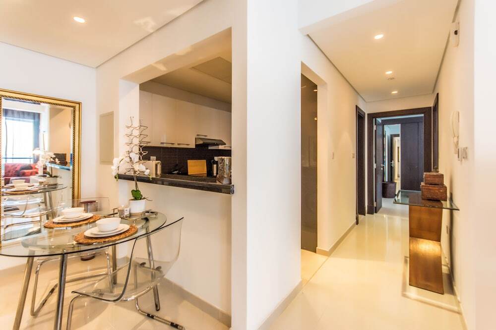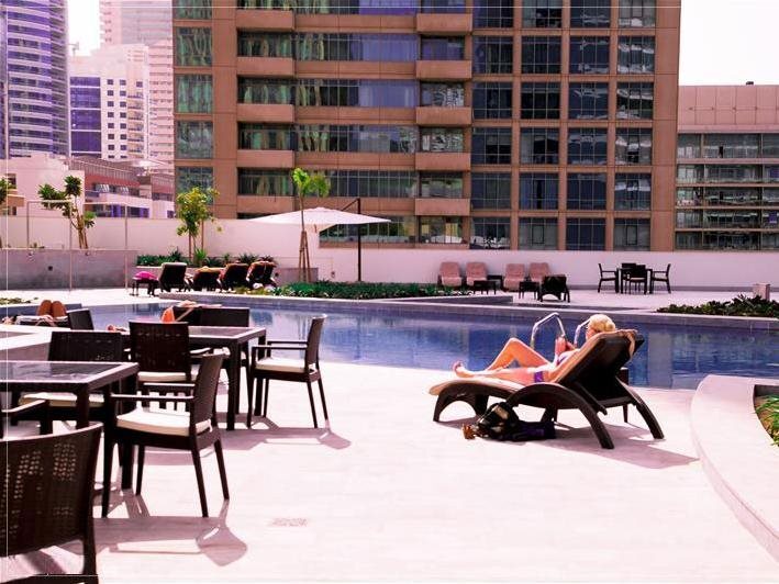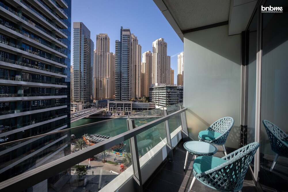 This apartment complex welcomes guests in Dubai.