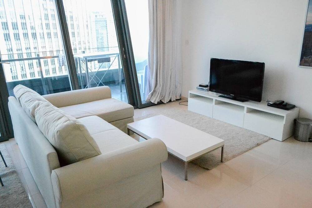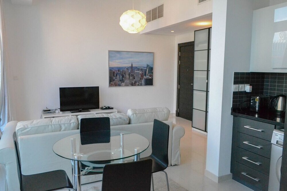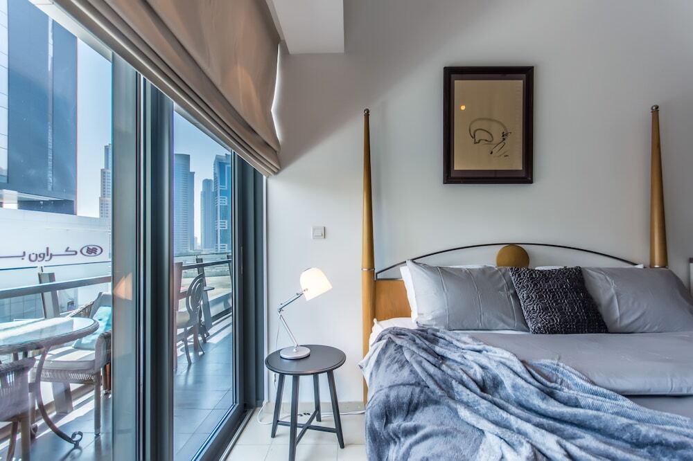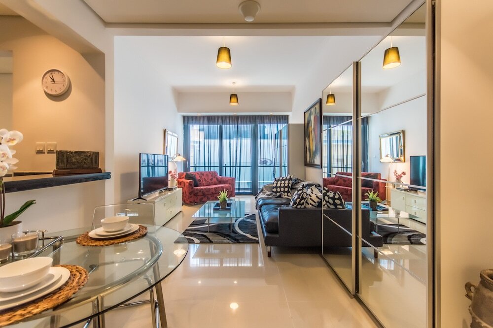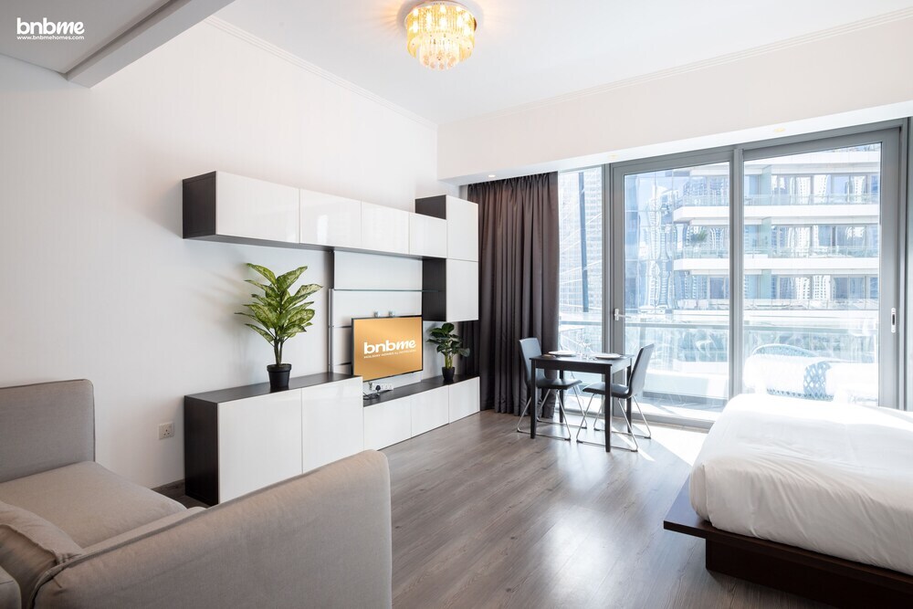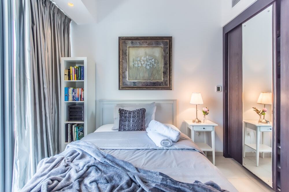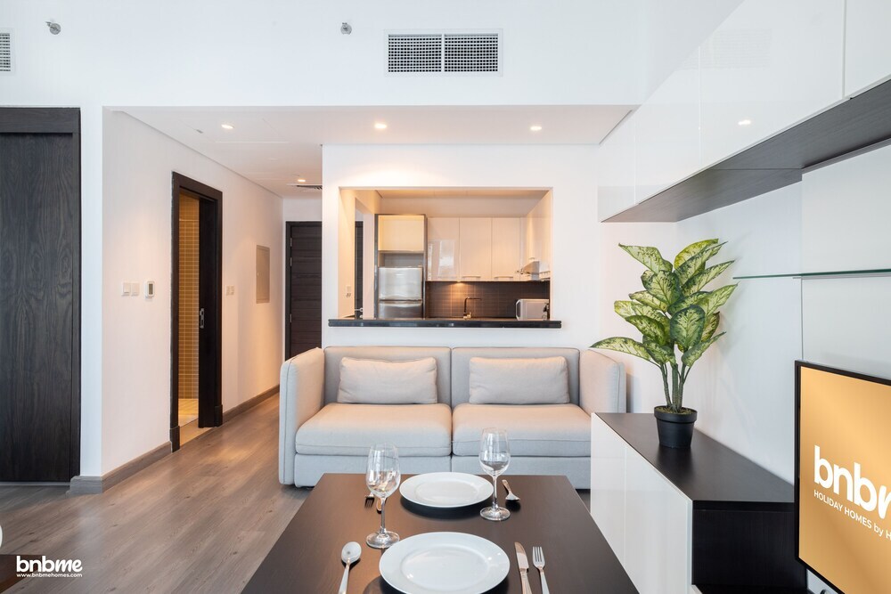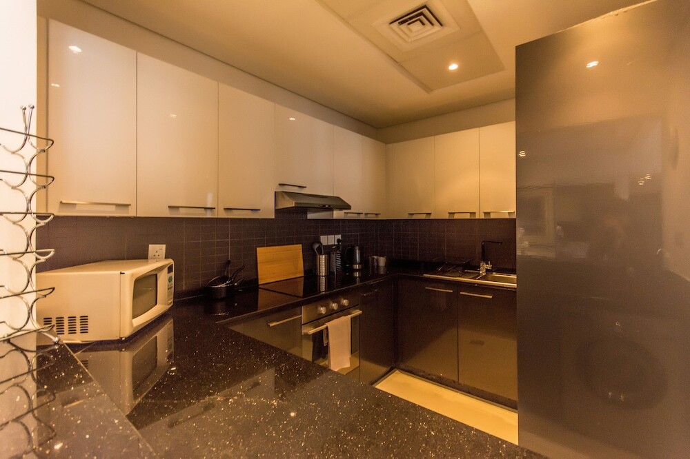 This apartment complex welcomes guests in Dubai.