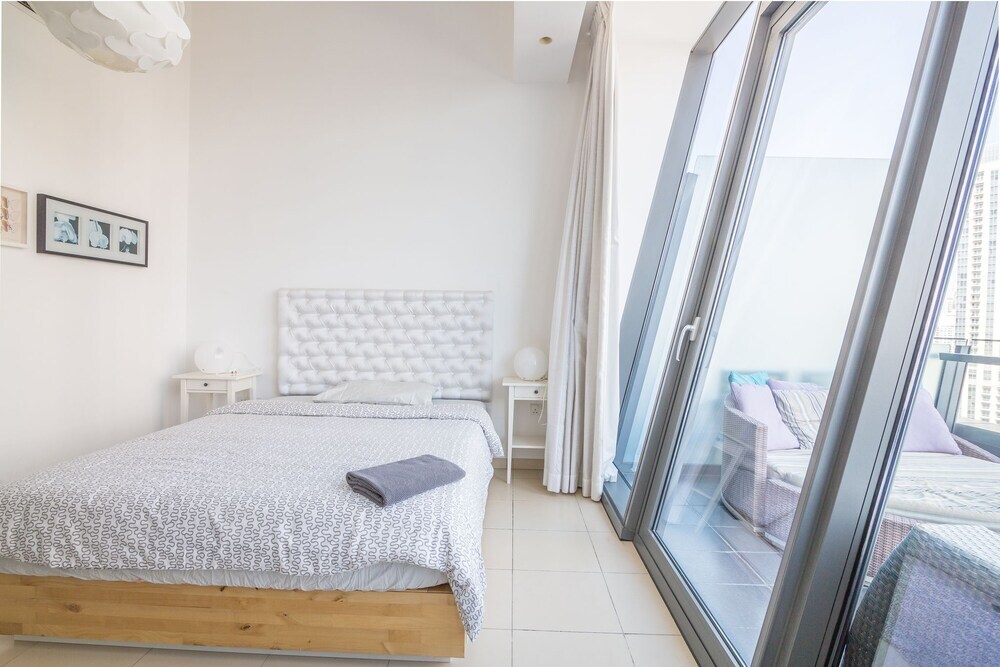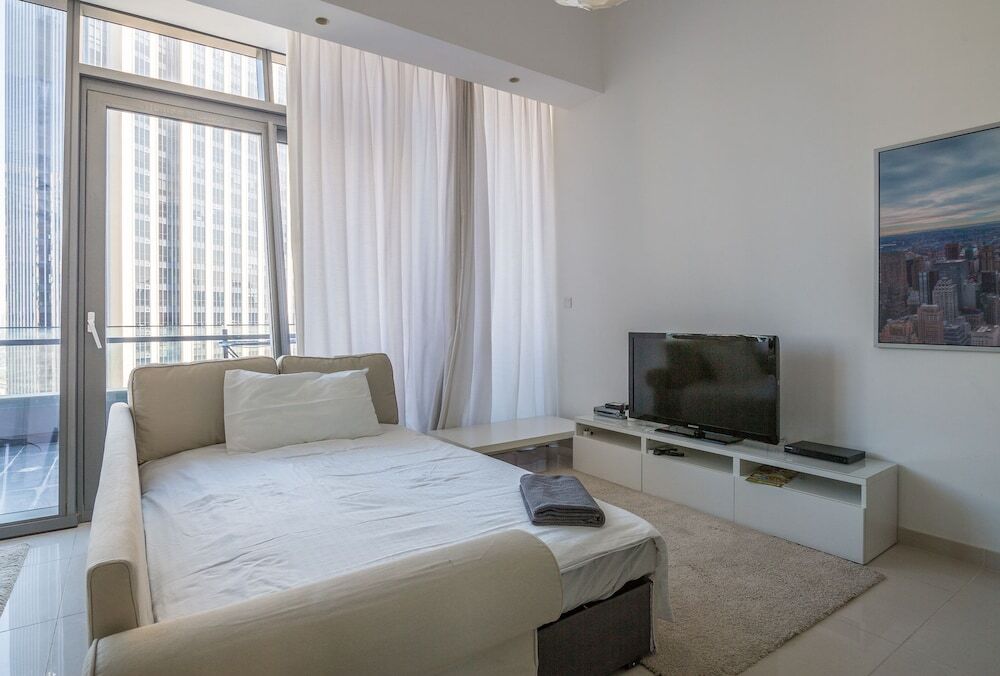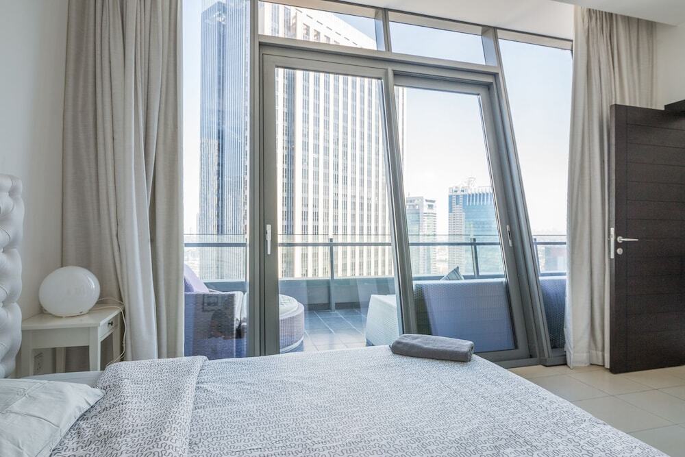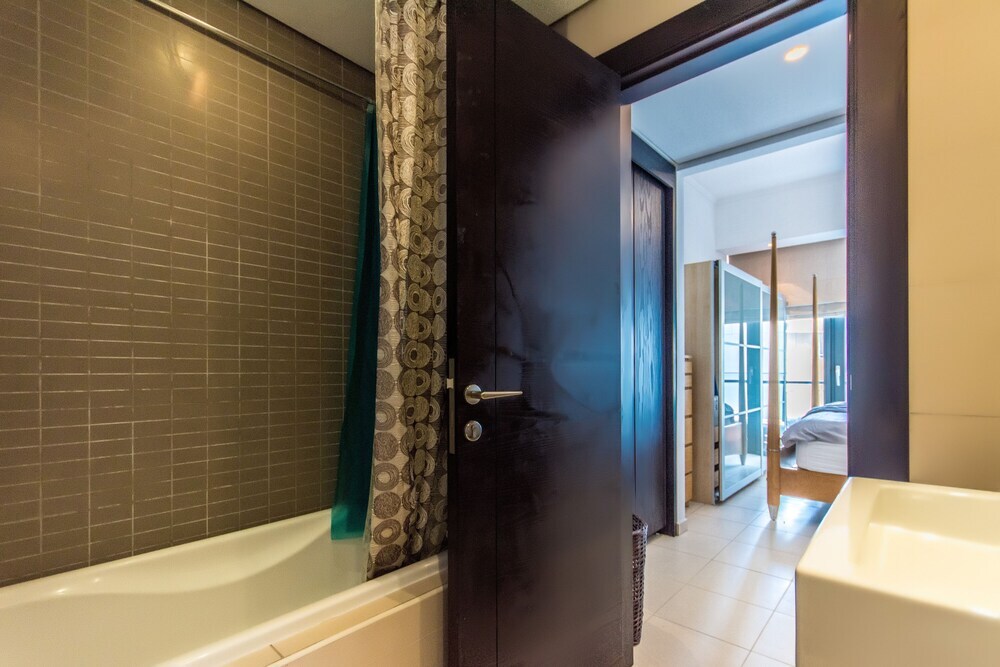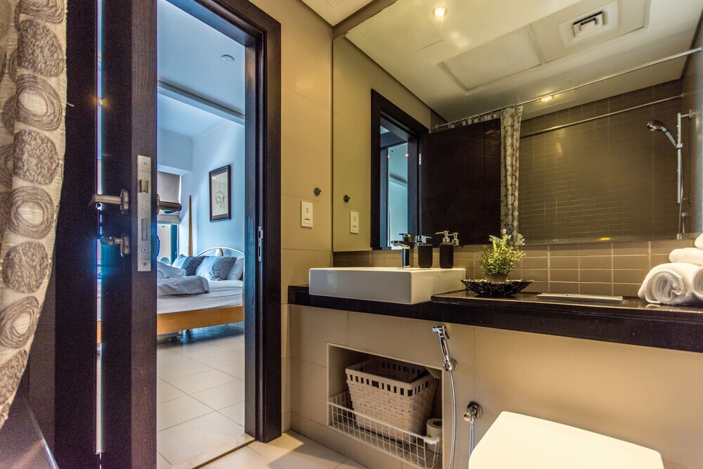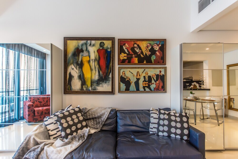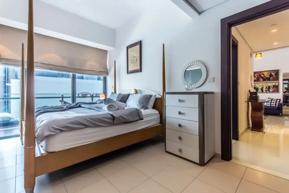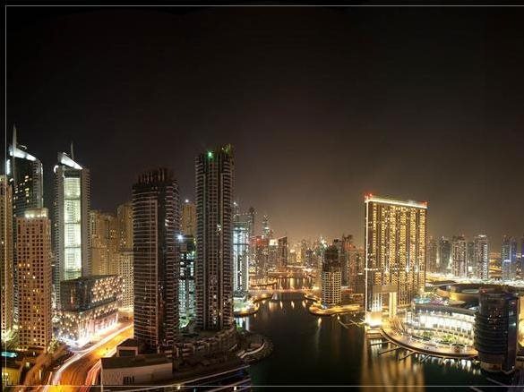 This apartment complex welcomes guests in Dubai.
