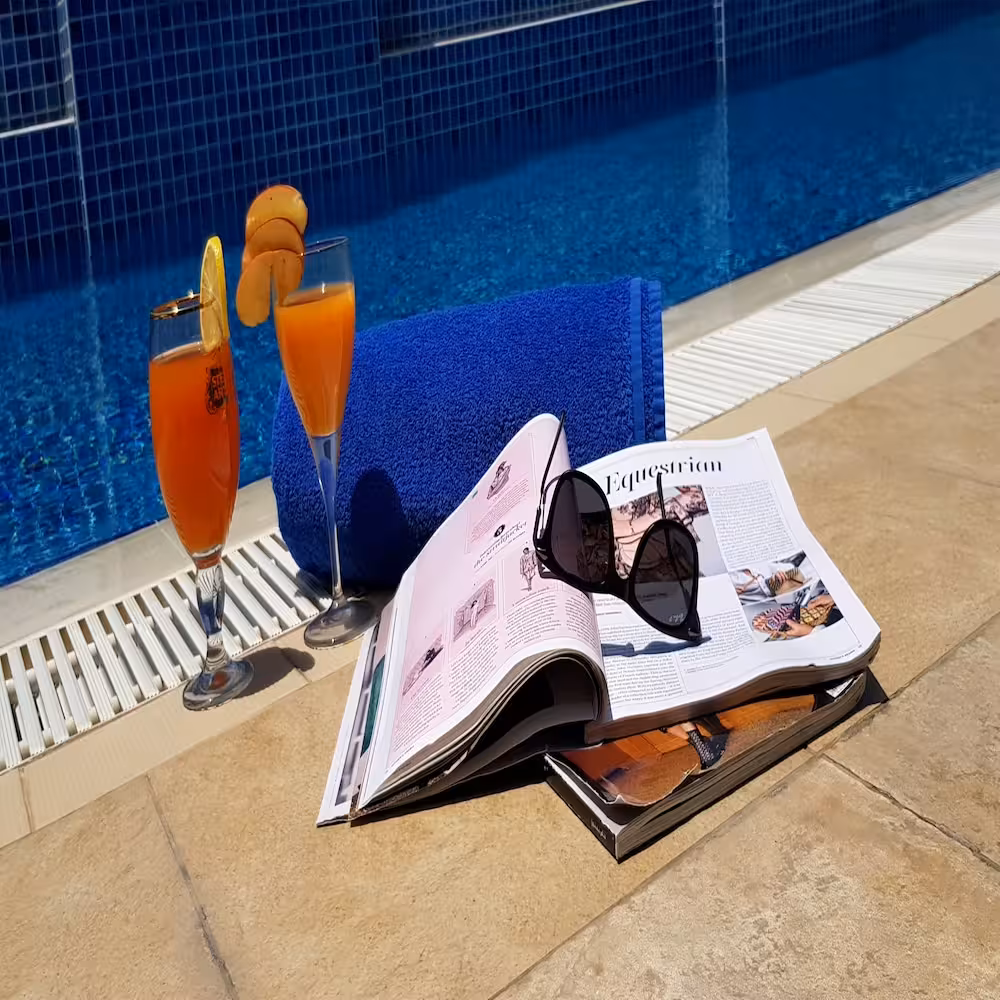 The outdoor pool complex includes a children's swimming area and pleasantly heated water to ensure comfortable swimming. Comfortable sun loungers are available on the terrace. Active guests can enjoy golf. Sport and leisure facilities at the apartment hotel include a gym and aerobics. Various wellness options are available at the hotel, including a spa, a sauna, a steam bath and a hammam.