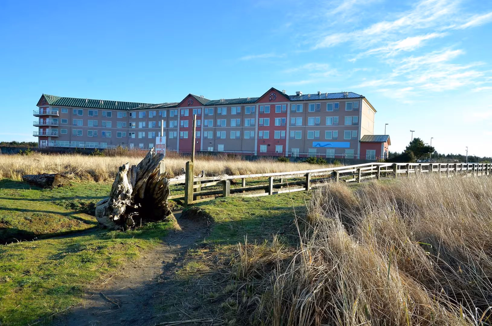 This hotel is located in Ocean Shores, right on the beach.
