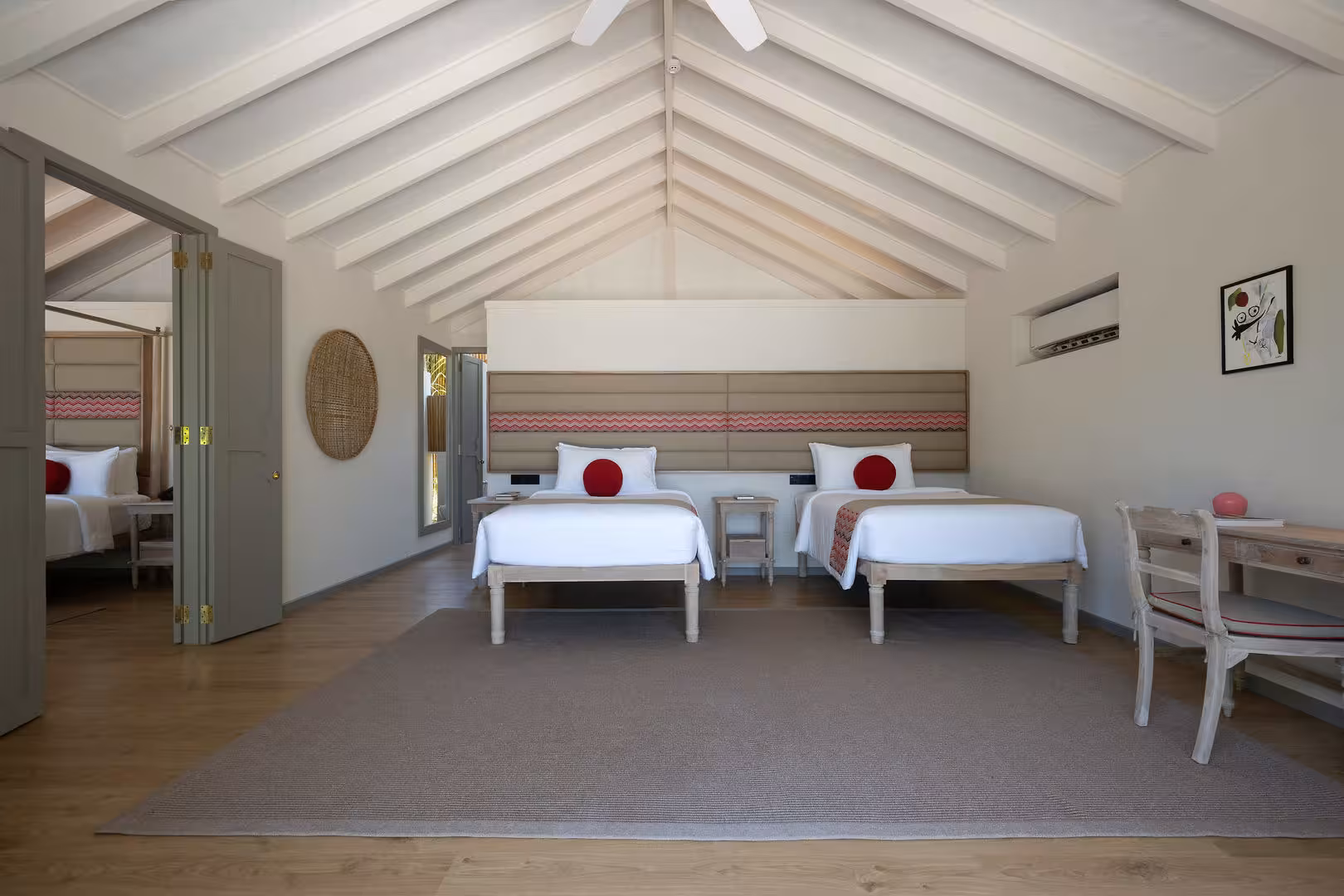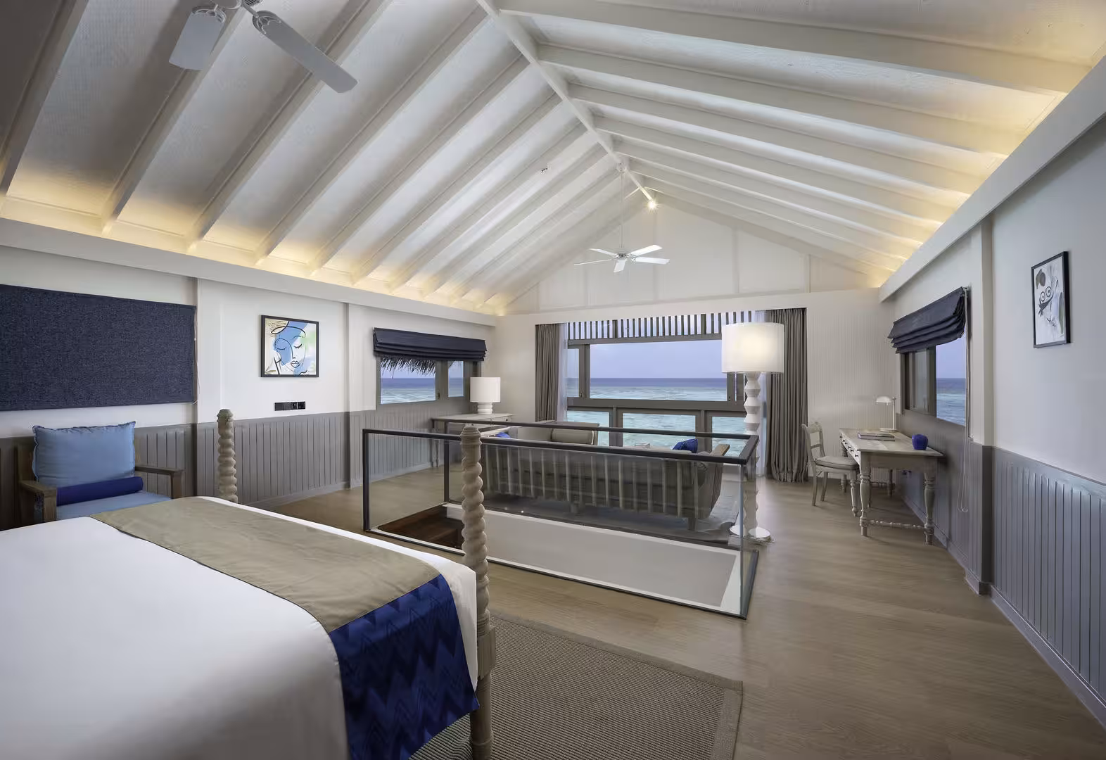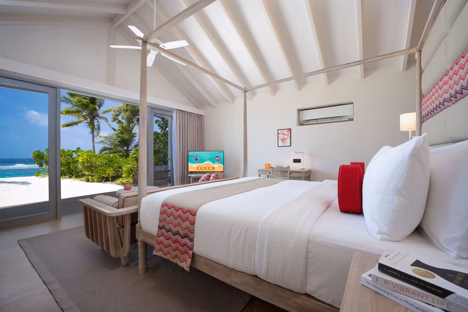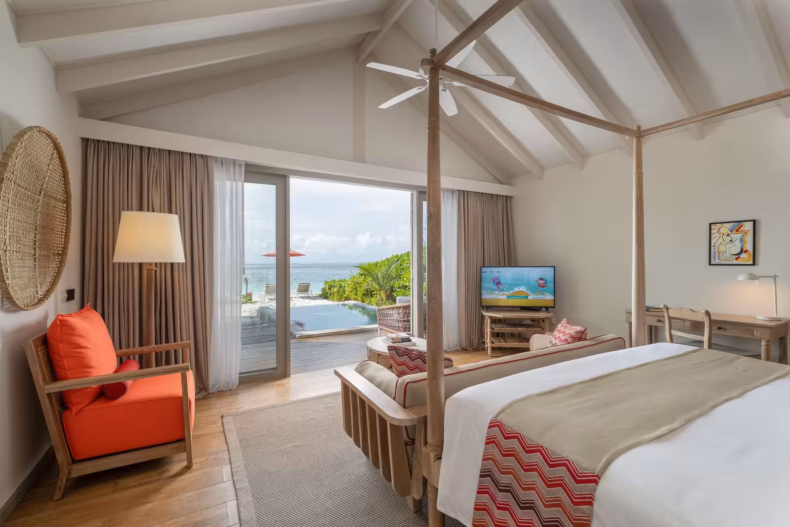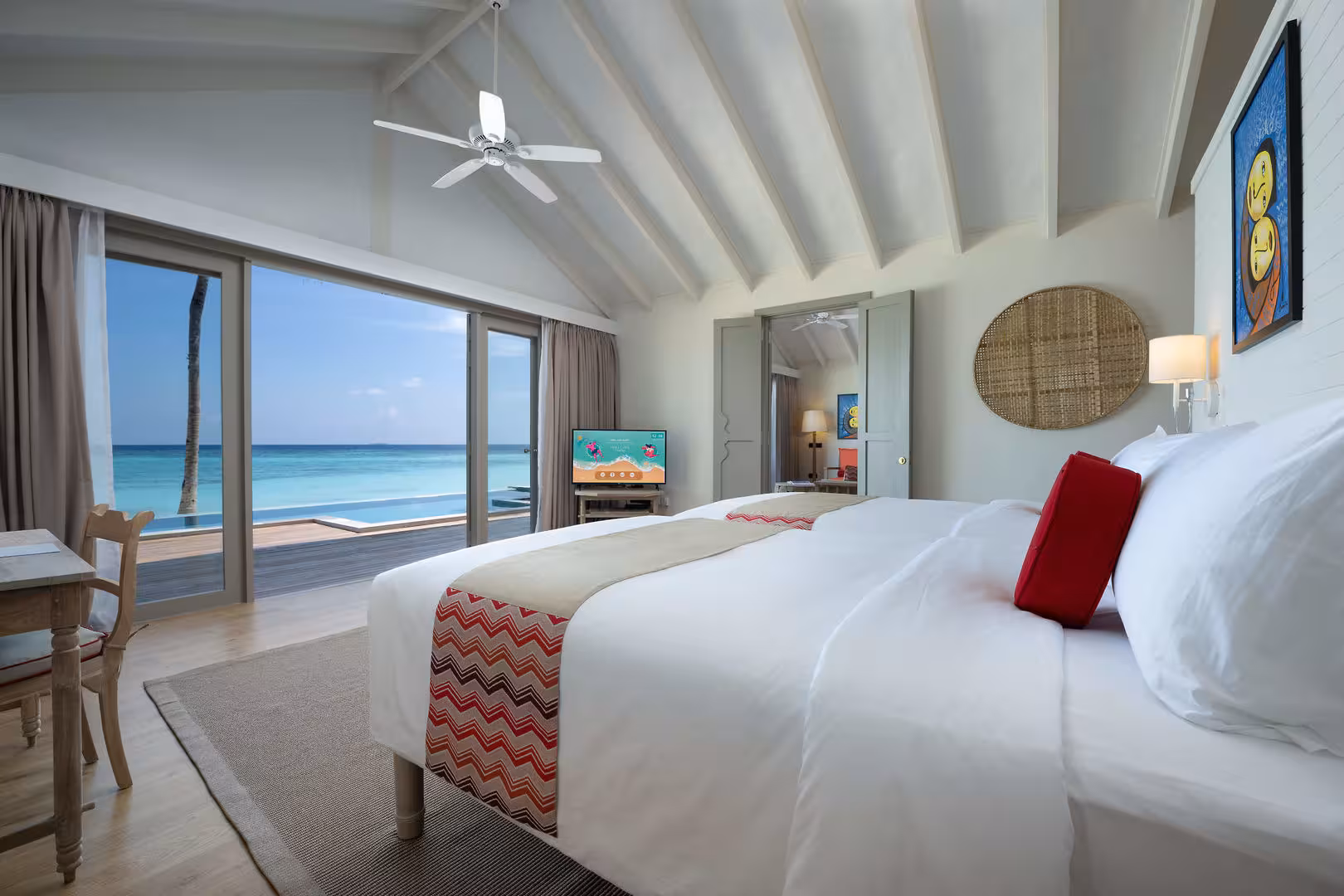 This resort is located in Raa Atoll, right by the sea.